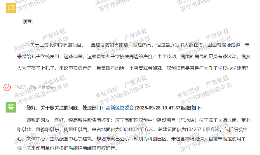 济宁市三贾北边双创项目用途引关注,最新官方回复来了