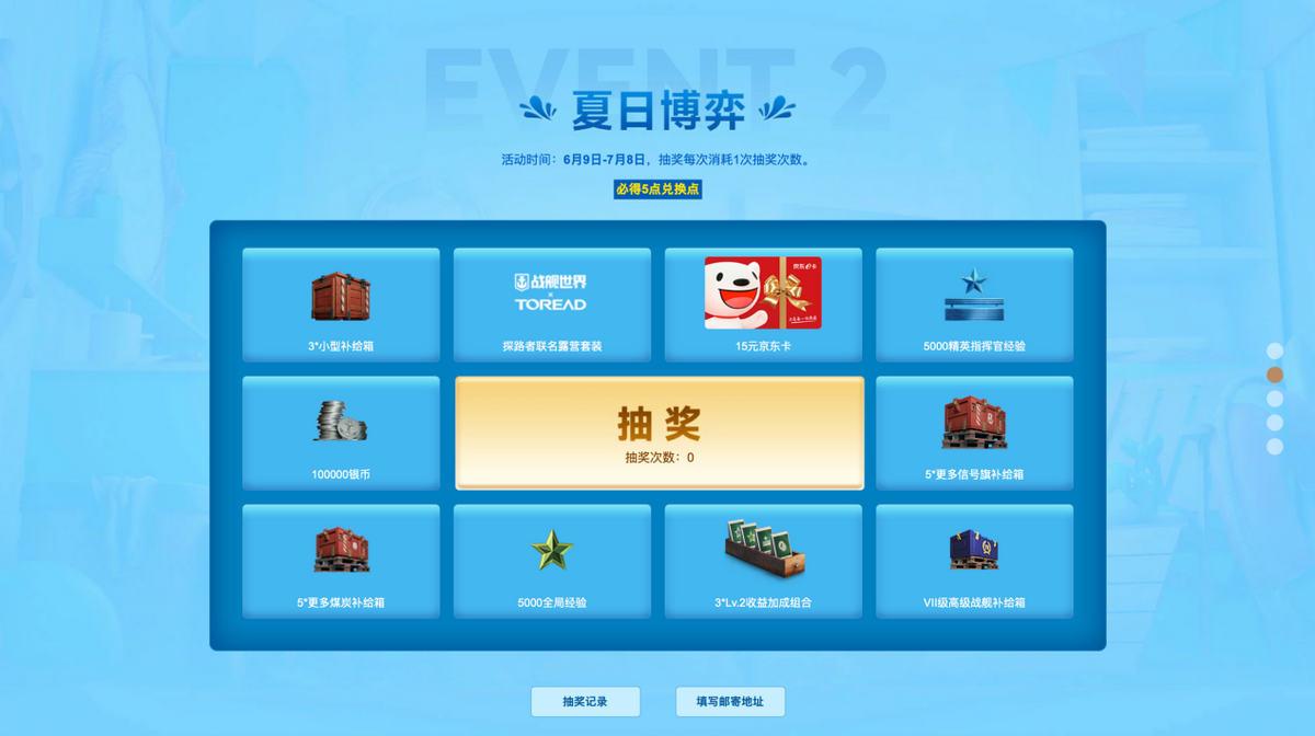此外也同期开启了“夏日燃情”的一系列礼遇活动,完成作战任务获取相应的分值,就能参与抽奖,不止有虚拟奖品更有超多实物礼,还贴心的给大家设置了奖池保底,这波想不中奖都难!连小编都兑换了到了心仪的礼物,手气欧的舰长更是收获满满!