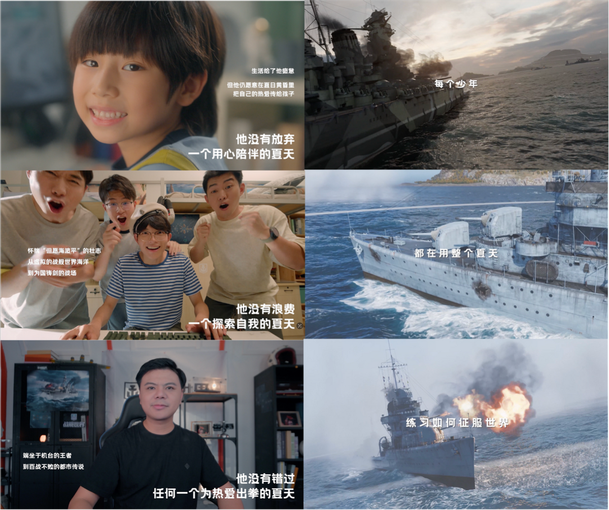 官方还特意为“夏日燃情狂欢季”打造了一部玩家群像短片,以不同身份的玩家形象展开夏日激燃的故事,令人惊喜的是,短片还邀请到了“小孩曾卓君”来出演!小孩在格斗电竞比赛中不服输、拼到底的爆燃精神和《战舰世界》玩家们的精神非常契合,没想到这次也让大家看到了小孩背后对于电竞对于输赢的态度,还有“男大的夏天”和“爸爸的夏天”也展现了舰长们的夏日故事,又温情又充满热血。不得不说,在诠释夏天这块,《战舰世界》是真的用心了。