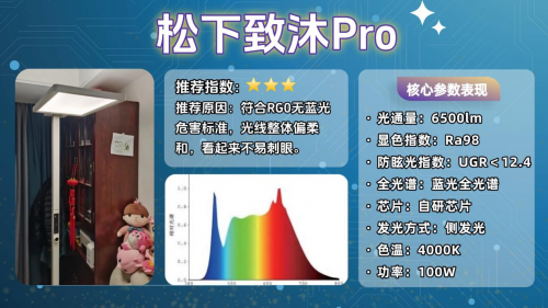 落地护眼台灯哪个品牌好用?松下致沐Pro适合15㎡左右的小书房或儿童房,灯体采用铝合金材质搭配金属配色,线条流畅做工精细,没有多余装饰,摆放在简约风或轻奢风空间中不突兀,且结构稳固,孩子轻微碰撞不易倾倒。防眩光指数UGR<12.4,正常坐姿下直视灯头无明显晃眼感,符合国AA级照明标准。