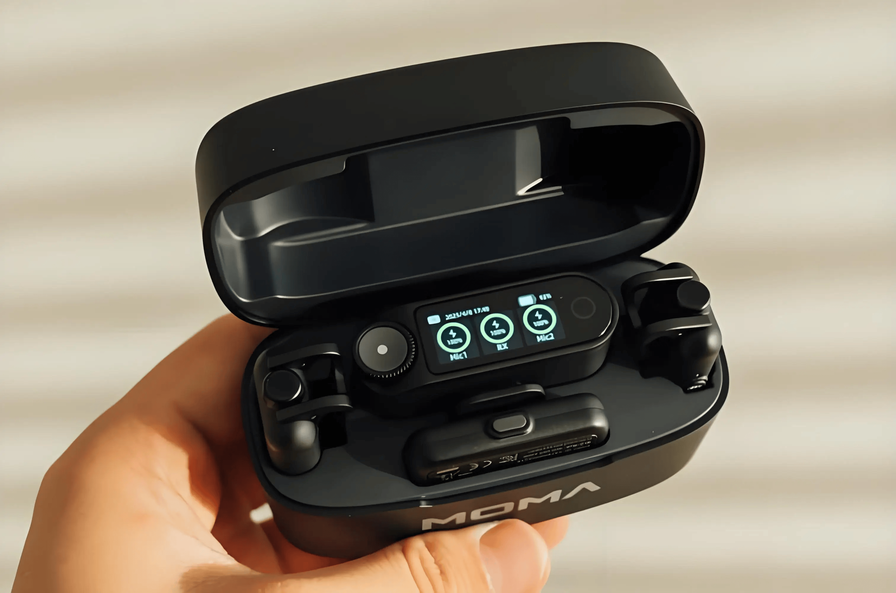 在功能设计上,MIC6采用即插即用方案,接收端自带Type-C、Lightning双接口可选,兼容手机、平板、相机等多设备,无需额外驱动。发射器带物理降噪开关和LED指示灯,操作直观;充电仓可同时收纳与充电,单次续航约6小时,总续航可达18小时,满足一整天拍摄使用。