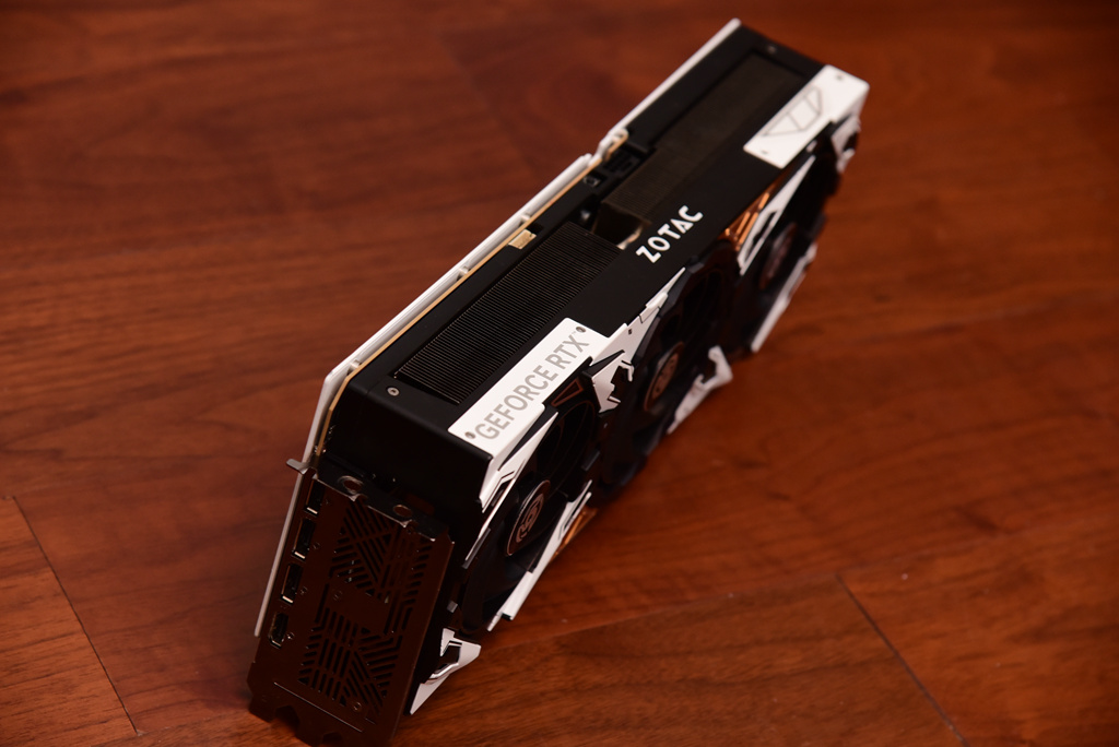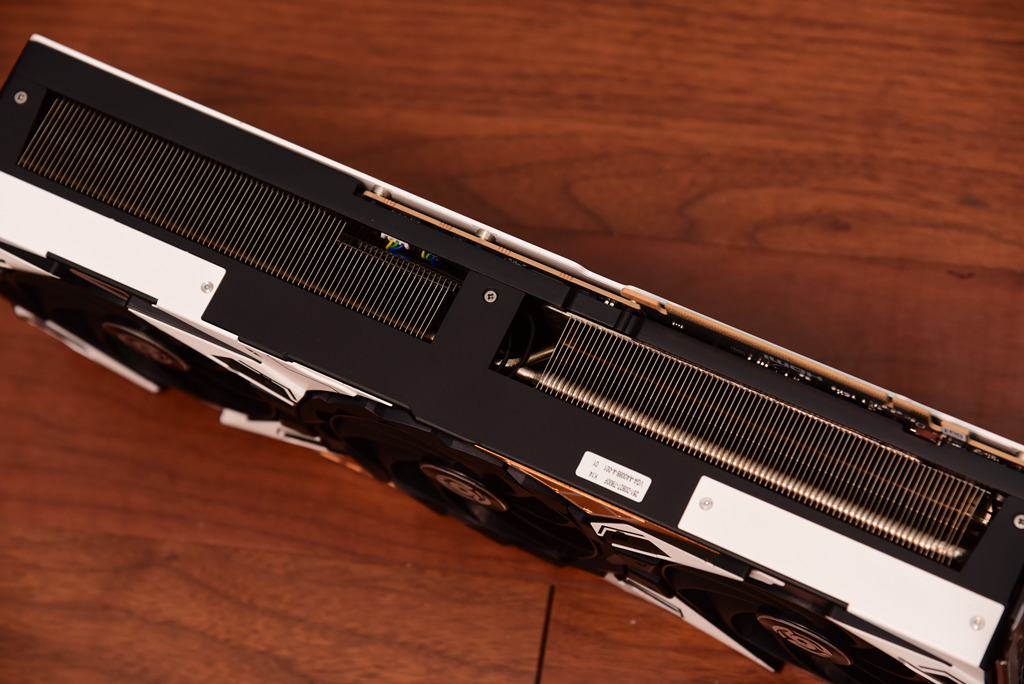 显卡侧边采用了封闭式设计,散热管封装在显卡内部,形成流通的散热风道。