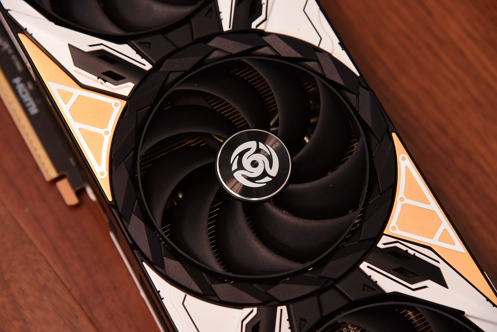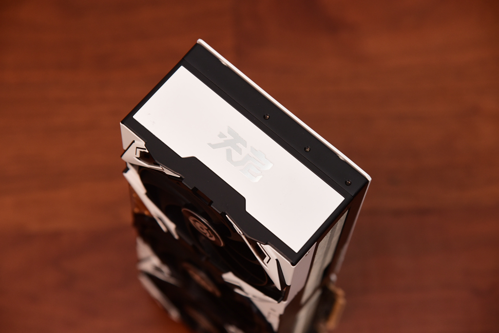 显卡散热器为三风扇设计,中间风扇的直径是10厘米,左右两侧风扇直径为9厘米,可以实现散热和噪音的平衡。
