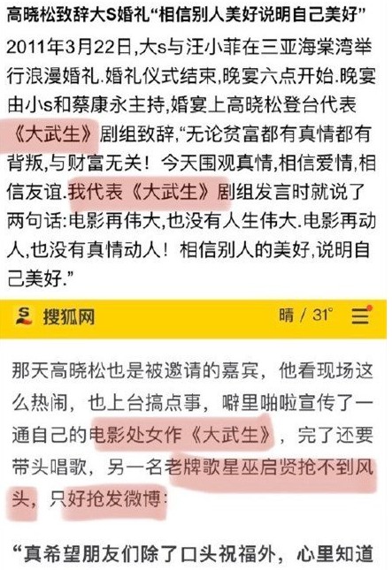 高晓松上台致词的时候,说的话比汪小菲这个新郎还多。