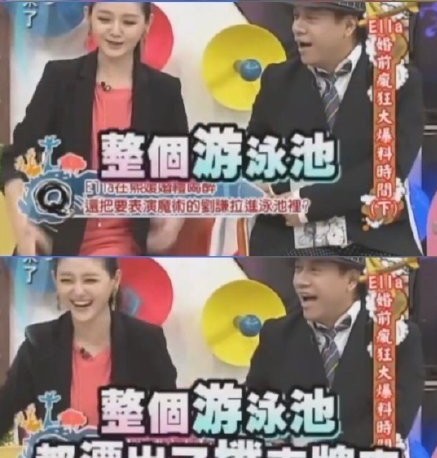 轮到刘谦上场表演魔术,在临表演前却被Ella一不小心推到了游泳池里。