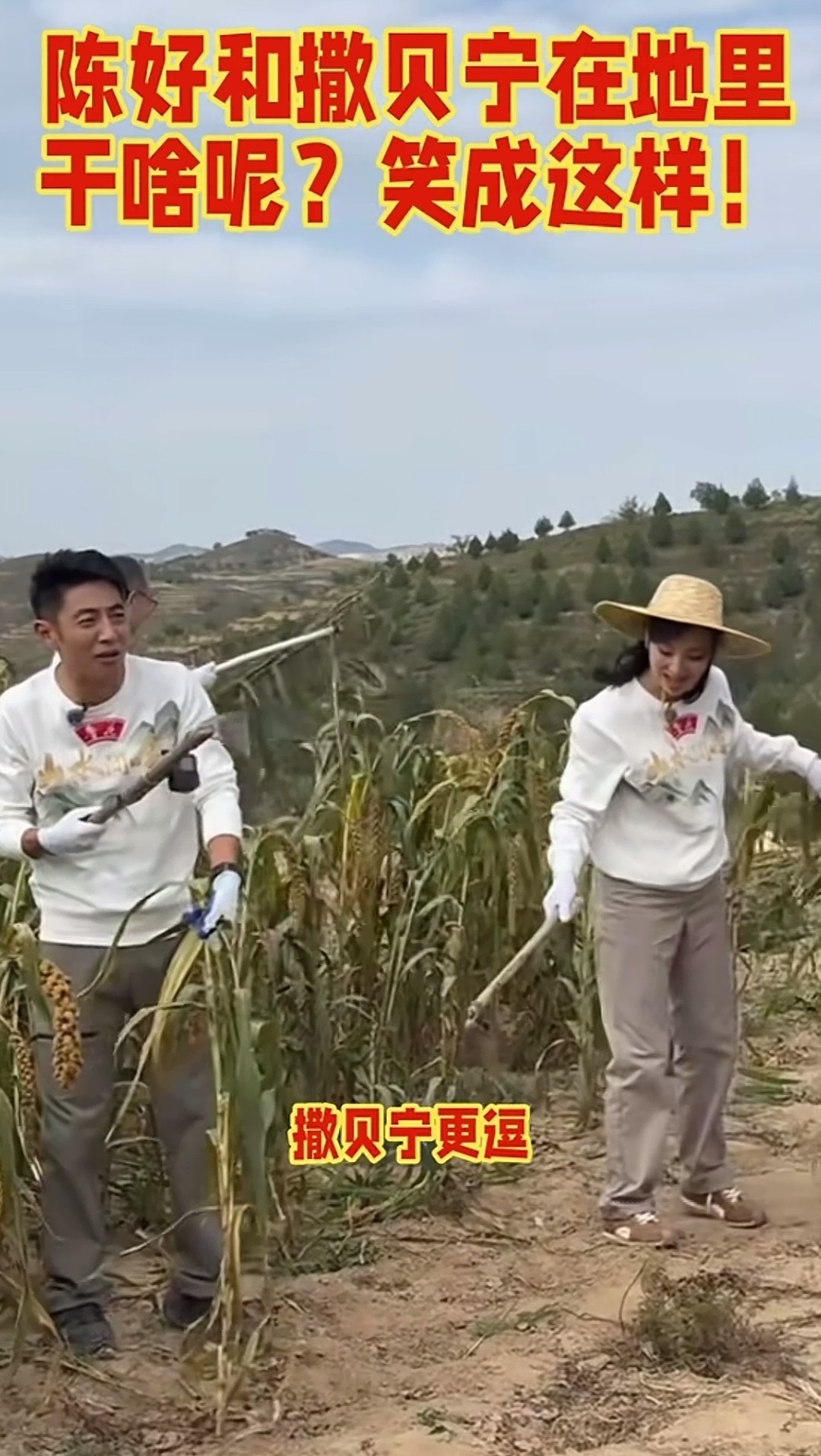 撒贝宁和陈好去了,穿得也挺普通,就是那种休闲的衣服,看着还真有点像下地干活的样子,特别是陈好,以前演“万人迷”那个,漂亮是漂亮,可总觉得离普通人挺远的,这次她蹲在地上割小米,动作还挺熟练的,不是那种捏着鼻子装模作样,感觉是真的在干活,网上好多人都说她接地气,不端着,挺招人喜欢的。
