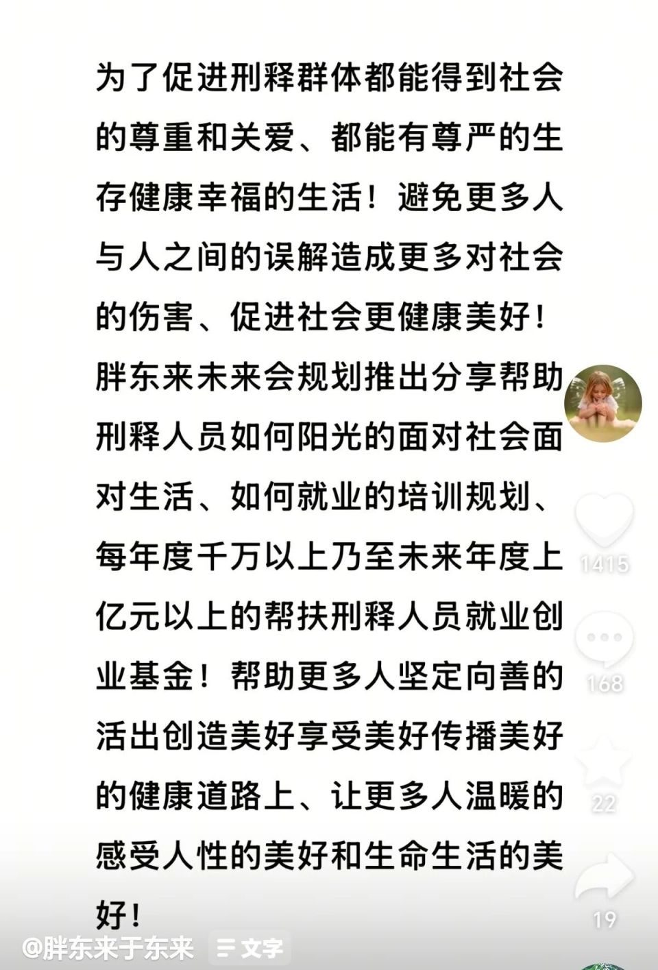 8月12日清晨,于东来通过社交平台披露,将推出针对刑释人员的帮扶举措,涵盖培训规划与就业创业基金支持。