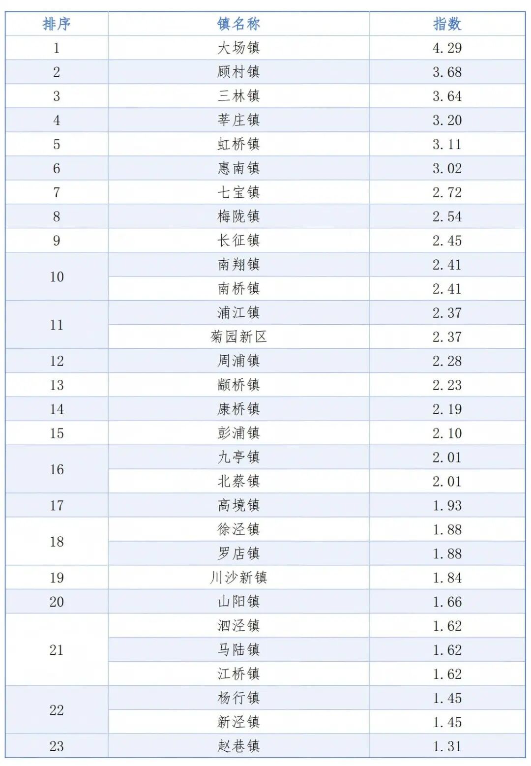 各类线下宠物消费业态在106个镇总计为2283家,按照各镇数量占镇总量的比例,折算出镇数量排名指数,得分相同的并列排名。