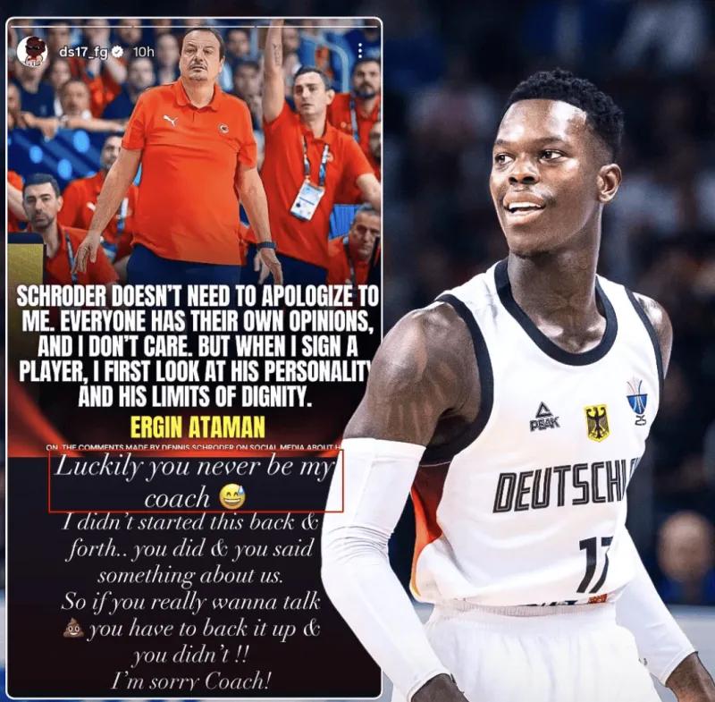 距离新赛季NBA常规赛开战还有不到一个月的时间。在今天早些时候,德国队球星施罗德和土耳其队主帅阿塔曼的口水仗再次升级,施罗德直言:幸好你不是我的主教练!