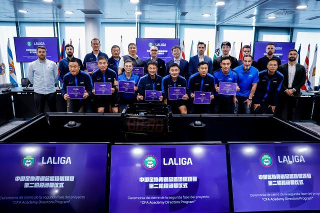 上周五,本次中国足协青训总监培训的闭幕式在西甲联盟举行,参加培训的十余名青训总监领取了本次培训项目的毕业证书。中国足协技术部负责人李飞宇在致辞中表示:本次培训项目自今年3月起开始策划,并最终得到实施,在培训的过程中,青训总监们前往7家西甲俱乐部的青训基地进行实地学习,观摩西甲俱乐部青训的工作,从中获益匪浅,这次培训对于中国足球青训的发展意义重大,下一步目标是学以致用,让西甲俱乐部的优秀青训理念在中国足球青训中得到实施。