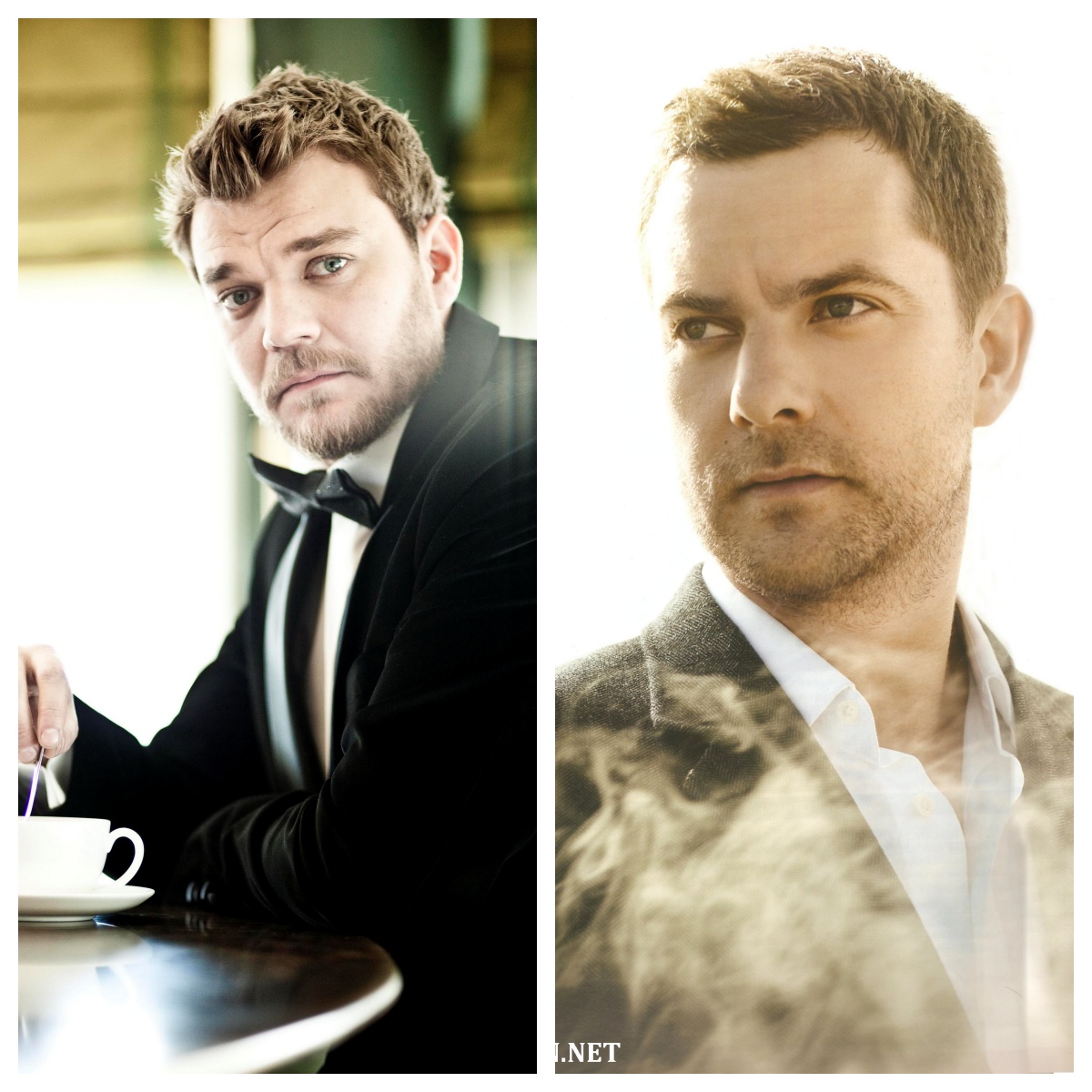 两位完美男神,如同雕刻般的英俊面孔和湛蓝眼睛。