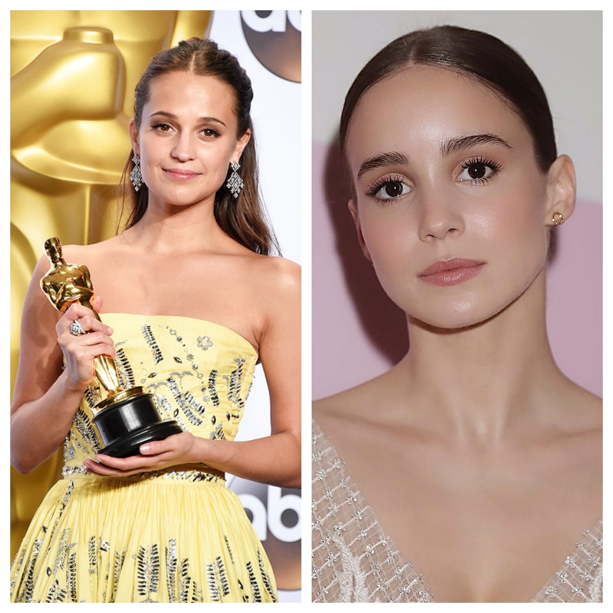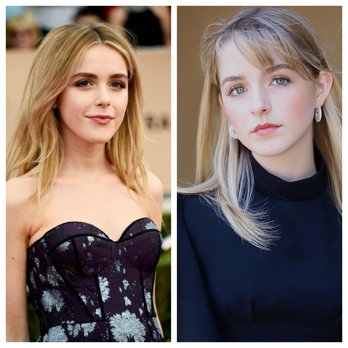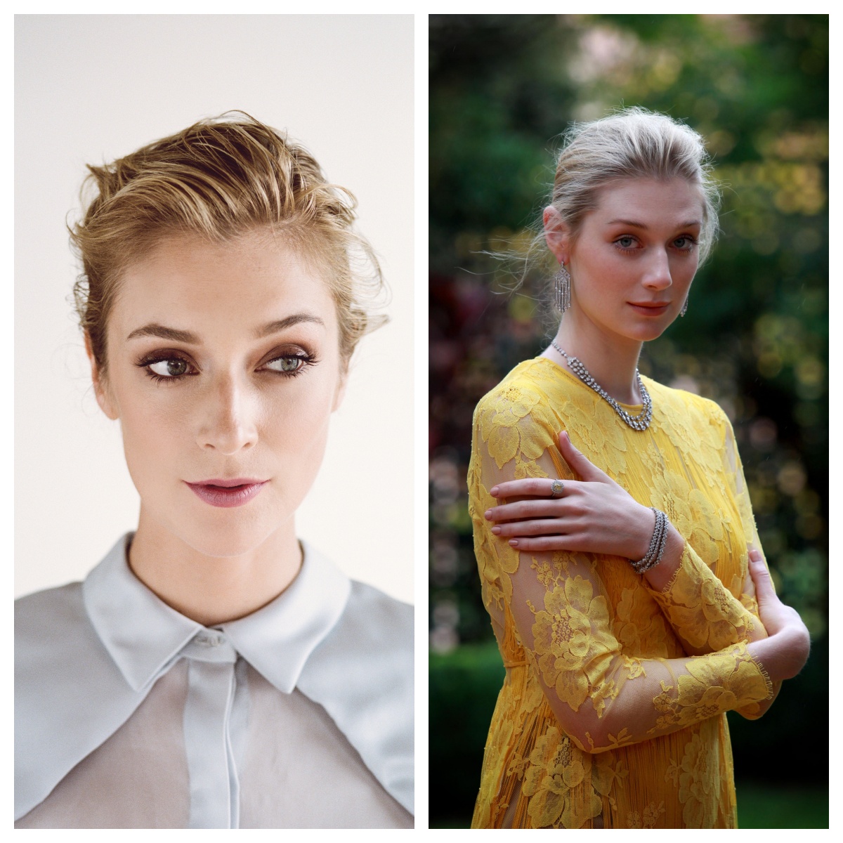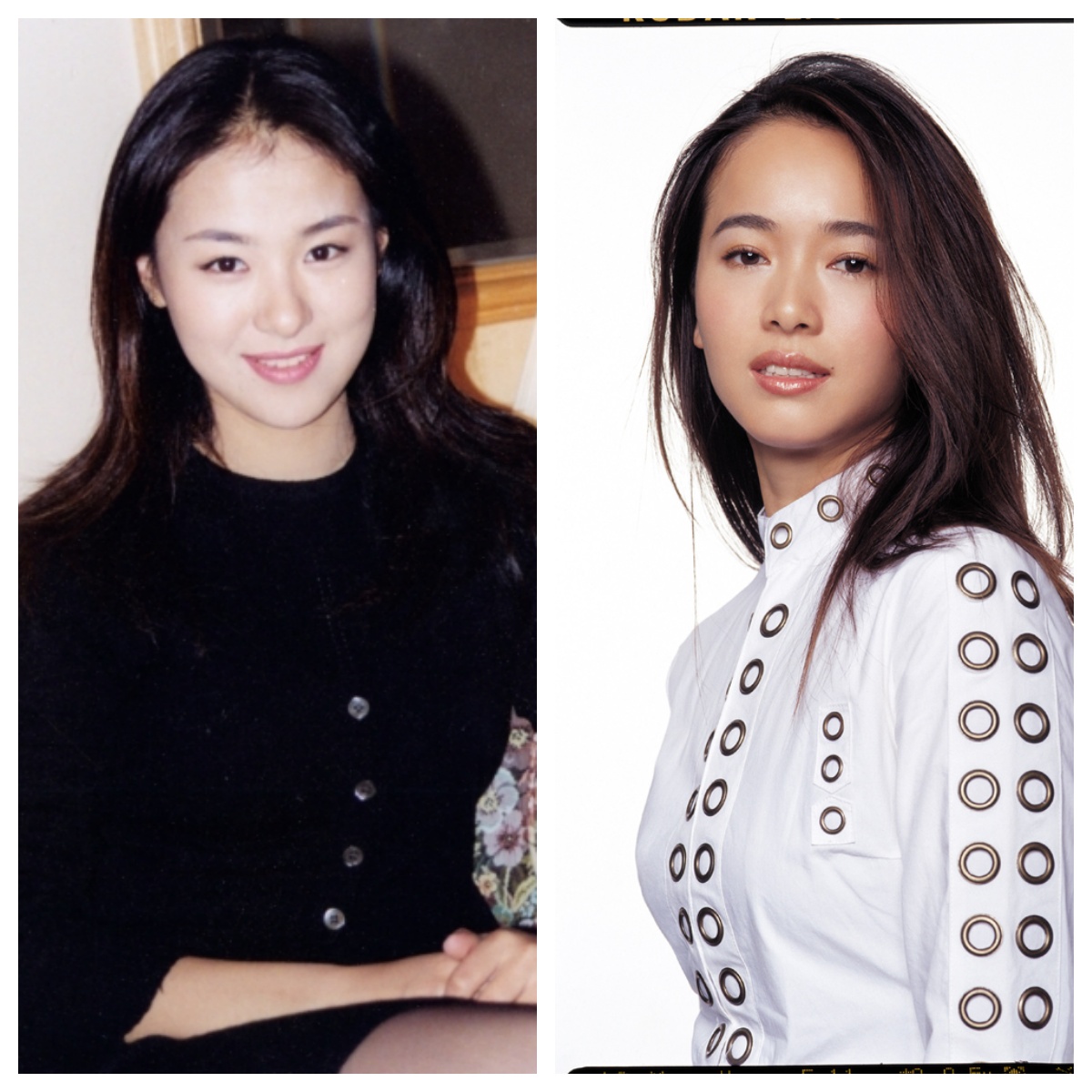 两位不同世代的女神,共享一双大而明亮的眼睛和优雅气质。
