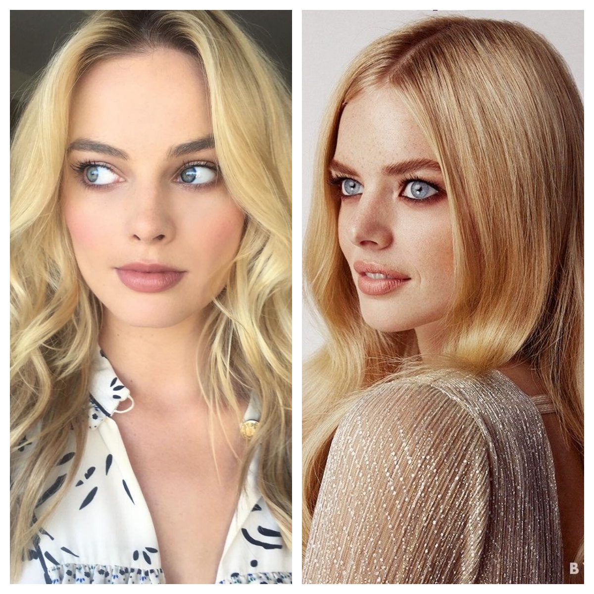 两位金发美女,白皙的肌肤+精致的五官。