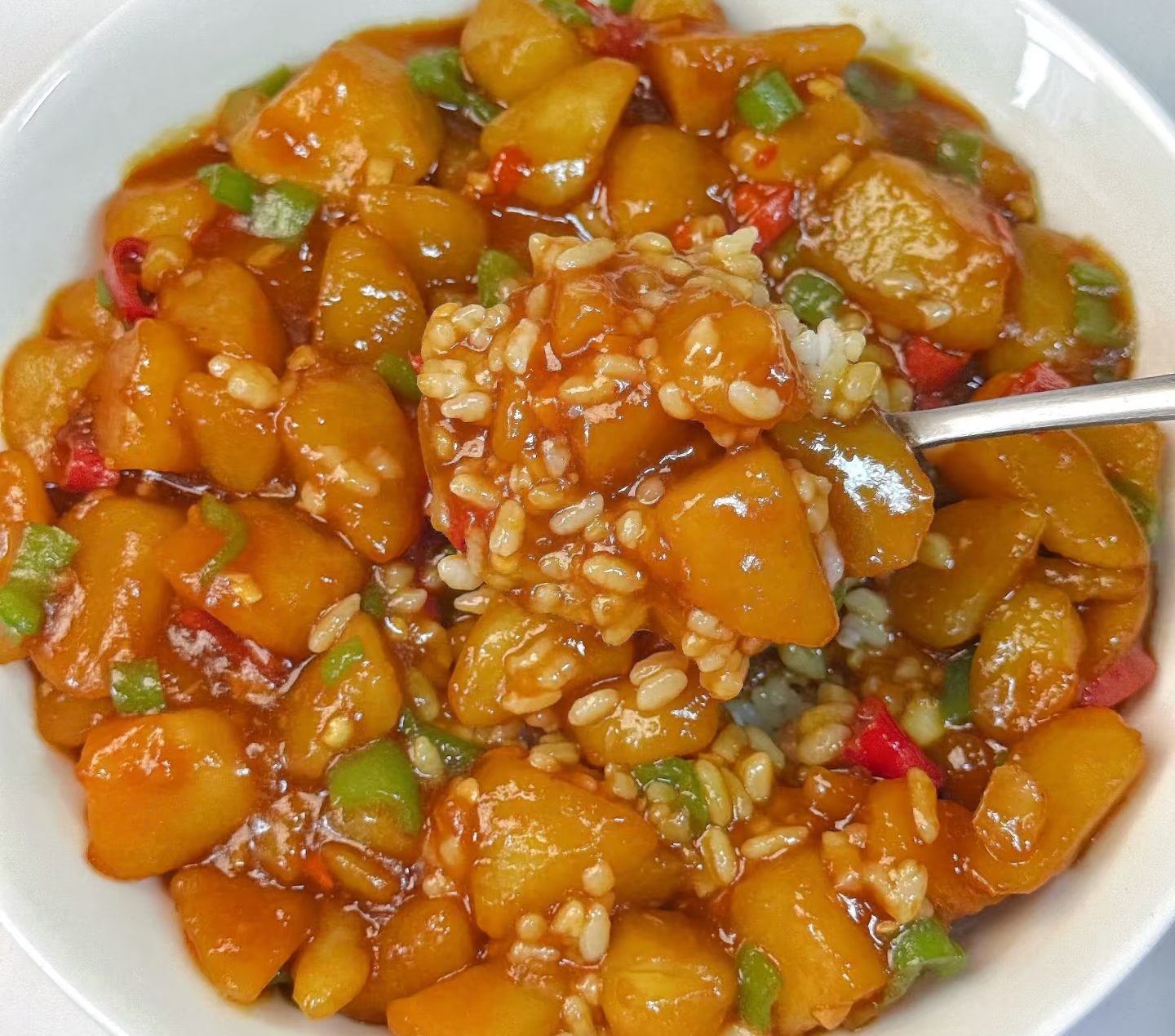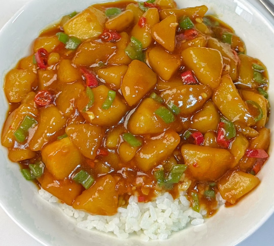 这碗双椒土豆拌饭,其实是我“复制”大学宿舍楼下小摊的味。那时候月底穷得叮当响,老板娘看我眼巴巴站在摊前,就会把铲子敲得叮当响:“小妹,三块五,给你多浇一勺!”她用的也是青红双椒,说这样颜色喜庆,吃的人心情好。后来我毕业、搬家、换城市,每当深夜被 KPI 逼到墙角,我就复刻这碗饭,一口下去,耳边仿佛又听见老板娘的锅铲声——“别怕,吃饱再打仗!”原来,食物最厉害的地方,是把遥远的人声与温度,隔着岁月,原封不动地送到你面前。