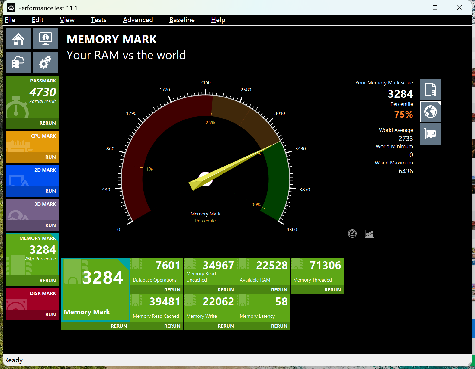 同样的趋势,也复现了上述两个测试的结果。在PerformanceTest的测试之中,它的得分为3887分,直接杀入了全球内存跑分前4%的序列之中,这个结果还是非常让人满意的。