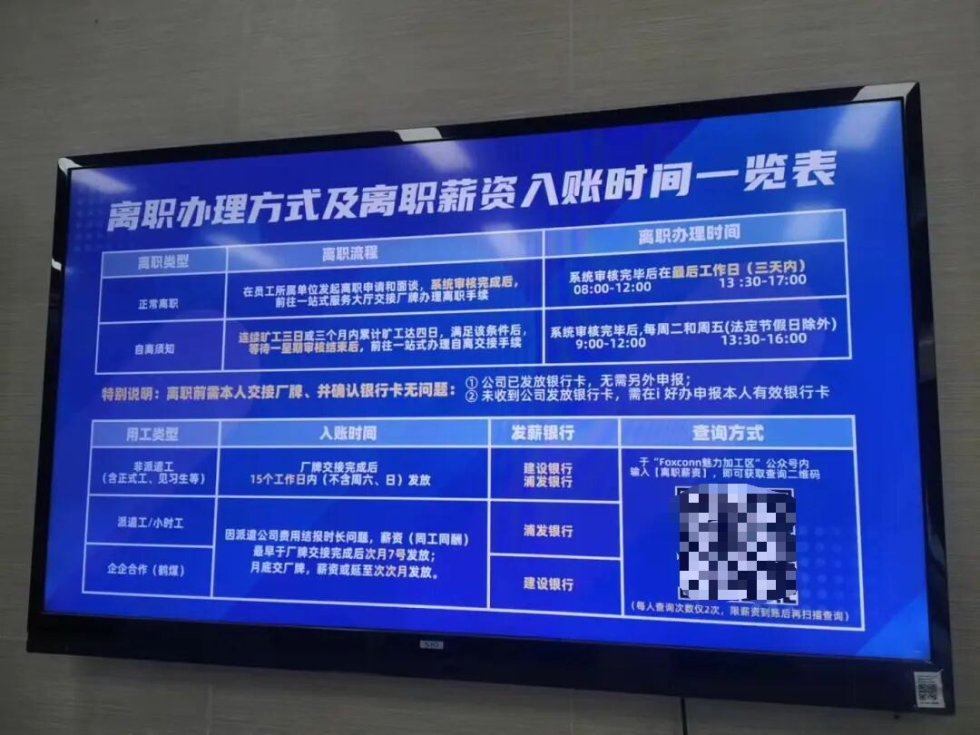 离职薪资发放时间郑州富士康港区与八大街两大厂区,以及各厂区内不同事业群,针对离职薪资的发放规则存在差异。