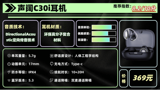 音质方面,C30i整体风格偏平衡,中频清晰自然,人声表现突出,非常适合通话、看视频或听轻音乐。低频偏轻盈,整体听感舒适耐听,不容易产生疲劳感。蓝牙连接稳定,支持蓝牙5.3,延迟低,配对快速,日常使用几乎不会掉线。续航约9到10小时,配合充电仓可进一步延长,满足全天通勤或外出需求,让耳机使用体验更加省心。