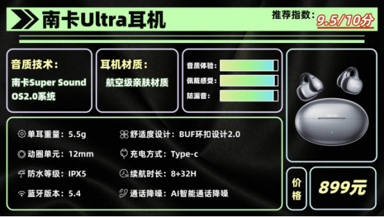 续航上,单次使用约8小时,配合充电仓总续航可达40小时,并支持快充,5分钟充电可使用约2小时音乐播放,满足日常通勤和长途出行需求。整体来看,南卡Ultra在佩戴舒适度、音质表现和续航上都非常均衡,是高性能开放式耳机中值得考虑的选择。