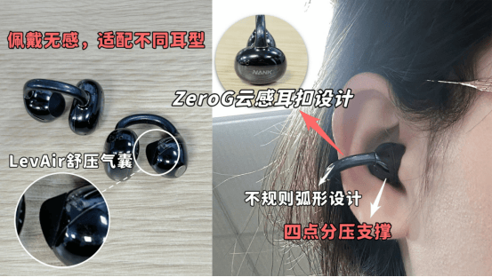 开放式耳机主打“轻、透、无压感”,所以材质、重量、夹力这些非常关键。耳夹、耳挂接触皮肤的地方要柔软亲肤,长戴不闷不痛才算真正过关。优秀的产品会用轻量化结构和弹性记忆材料,佩戴稳固又不紧绷,运动时也不容易掉。