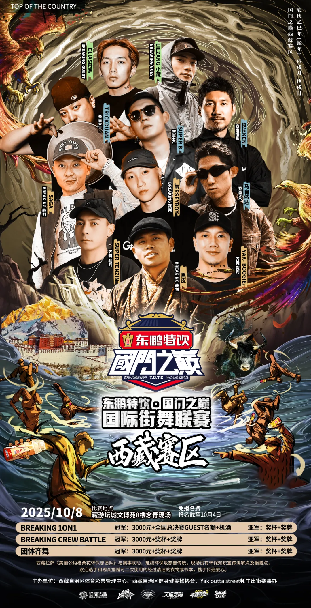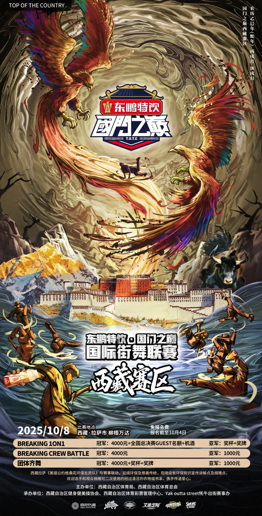 布达拉宫的白墙承接大地震感,牦牛踏过高原的节奏潜入Breaking的律动。10月8日,当“国门之巅”的战鼓响彻天际,这不仅是一场比赛,更是一次与天际线的对话。在离天空最近的地方,街舞褪去浮华,回归身体与意志最原始的碰撞。