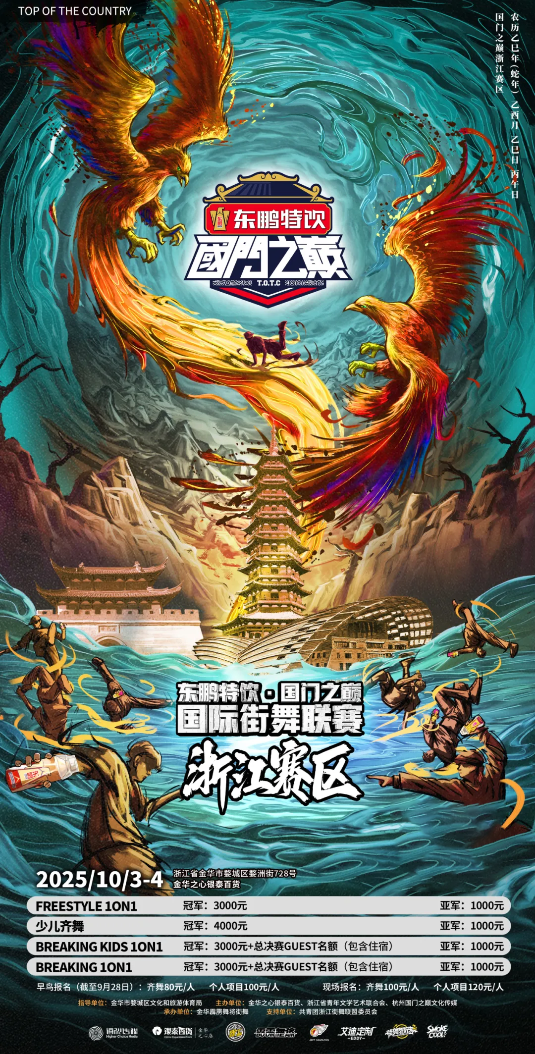 保宁门的城墙根下,Breaking的震动正与之共振。婺剧院翘角勾勒的天空线,被舞者腾空的轨迹再次定义。万佛塔静默千年,此刻却像在凝视着街舞赛场上的每一次定格里所蕴藏的现代禅意。10月3日至4日,国门之巅深入浙江金华,在这片文脉深厚的土地上,看江南的筋骨如何与街头的能量正面交锋。