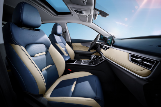 内饰方面,2023款瑞虎5x采用宽体环抱式布局,米蓝双色新潮典雅内饰让人一眼入迷。内饰色彩灵感来源于欧洲莱茵河,坐进车内就能感受来自大洋彼岸的时尚潮流。米蓝双拼潮感舒享座椅把舒适性拉满,让空间更具质感。一体式极简中央控制区,观感高级,符合年轻潮流审美偏向。2023款瑞虎5x外型精致、内饰优雅,堪称6万级SUV颜值天花板。