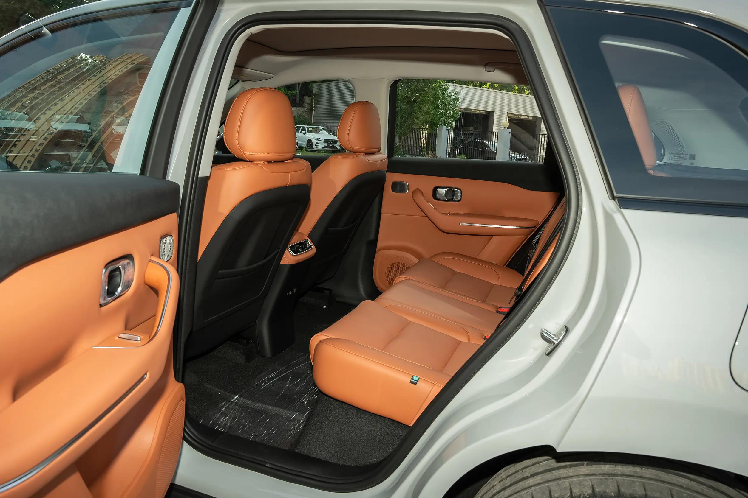 实用的是座椅放平功能:前排座椅能 180° 放平,放平后能变成一个纵长 1.8 米的 “大沙发”,平时在公司楼下午休,或者跑长途累了停在服务区,躺着休息特别舒服;如果前后排一起放平,能形成超过 2.7 米的 “大床”,再加上 3.3kW 的 220V 外放电功能,出去露营的时候,既能躺平休息,又能接电煮火锅、开照明灯,全家出游特别方便。