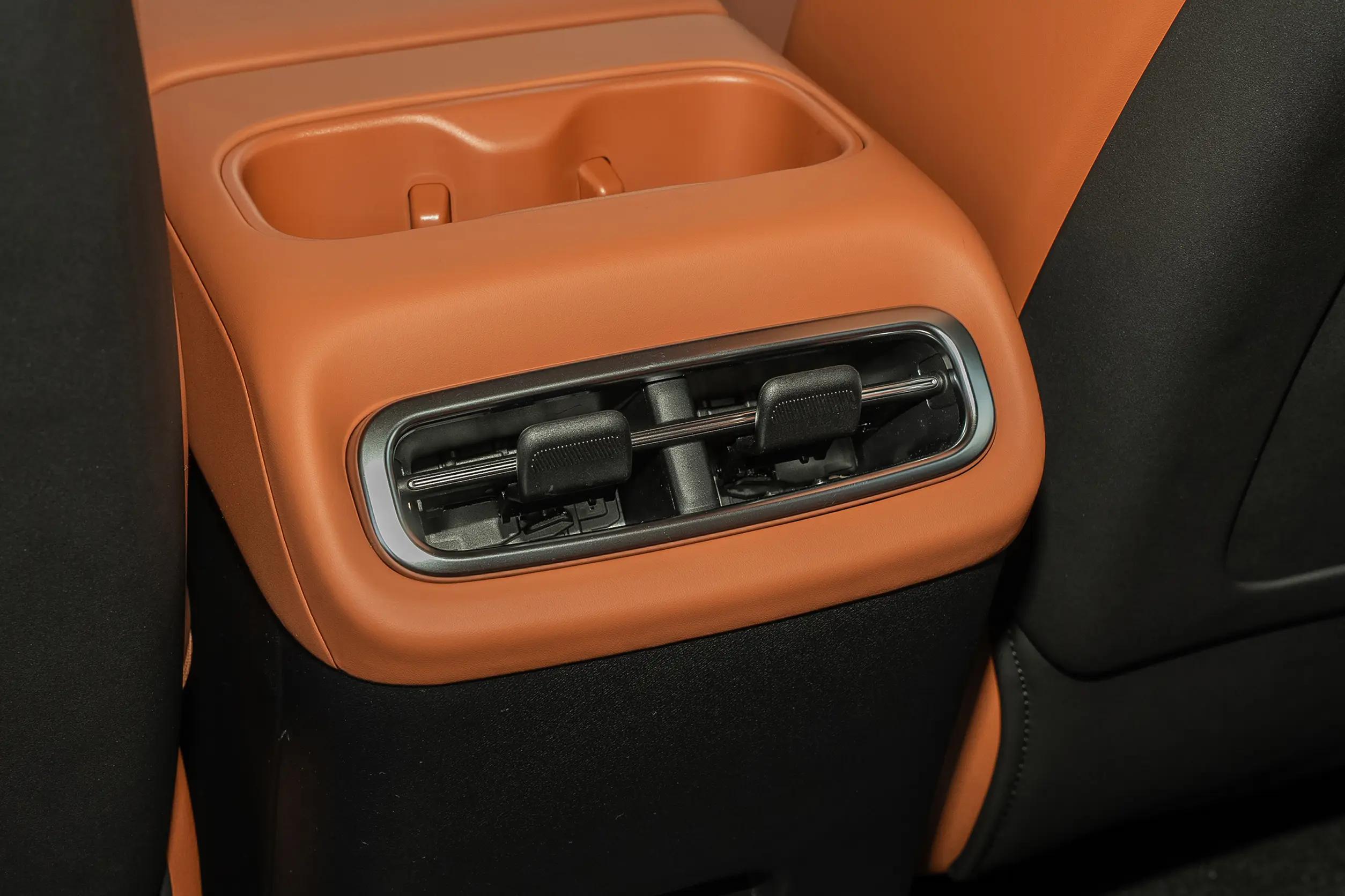 新款内饰还有几个实用升级:出风口是琴键式的全电动隐藏款,不用手动拨叶片,按一下就能调风向;氛围灯是瀑布式的,还能跟着音乐律动,晚上开车看着更舒服;实用的是 50W 手机无线快充,还带风冷散热,充电的时候手机不会发烫,平时随手把手机放上去,通勤路上就能充满。座椅用料也得夸夸,用的是婴儿能啃咬的有机硅材料,家里有小孩的话,不用担心小孩乱咬座椅有安全问题。而且座椅坐久了也不闷,夏天开车不会黏后背。