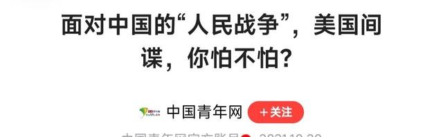 信息来源:中国青年网2021年10月20日发布文章《面对中国的“人民战争”,美国间谍,你怕不怕?》