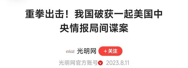 信息来源:光明网2023年8月11日发布文章《重拳出击!我国破获一起美国中央情报局间谍案》