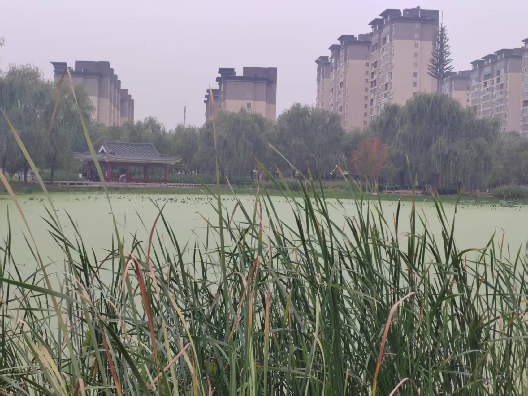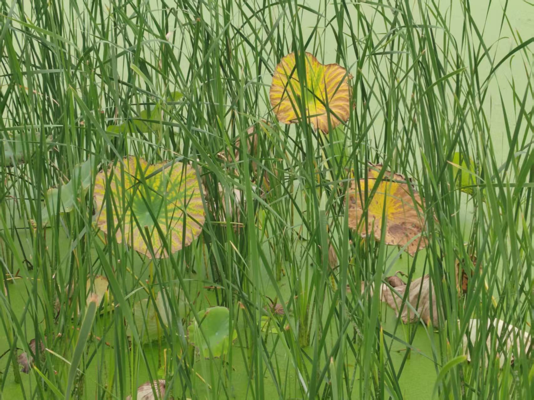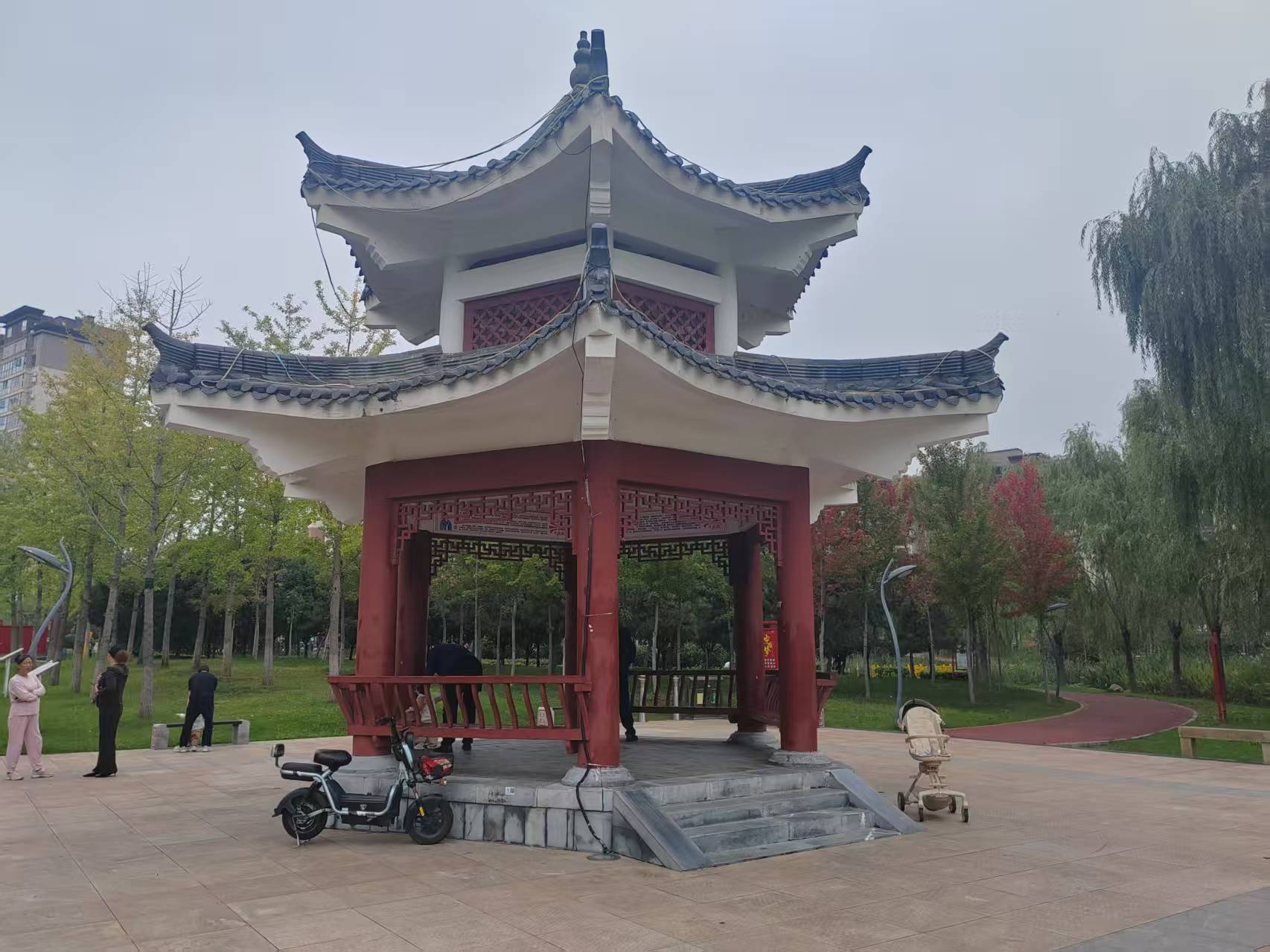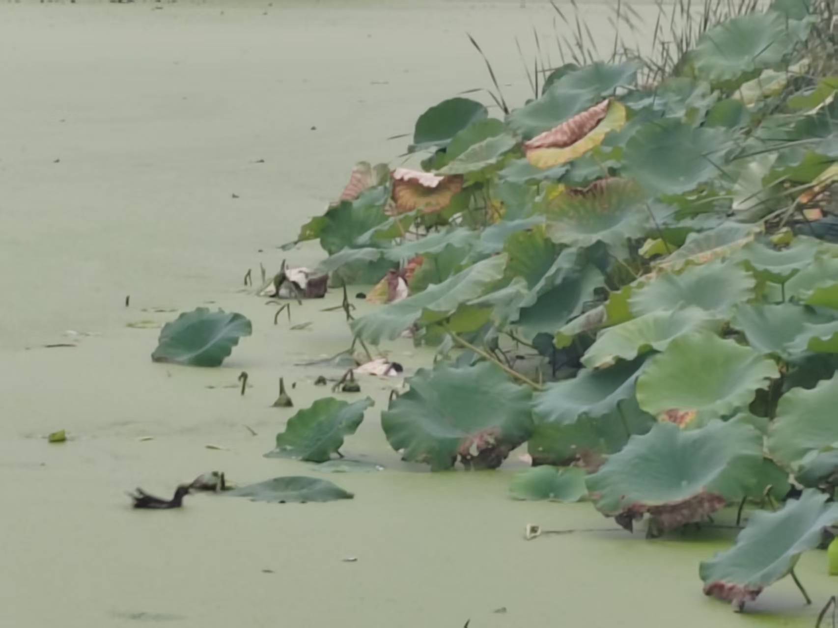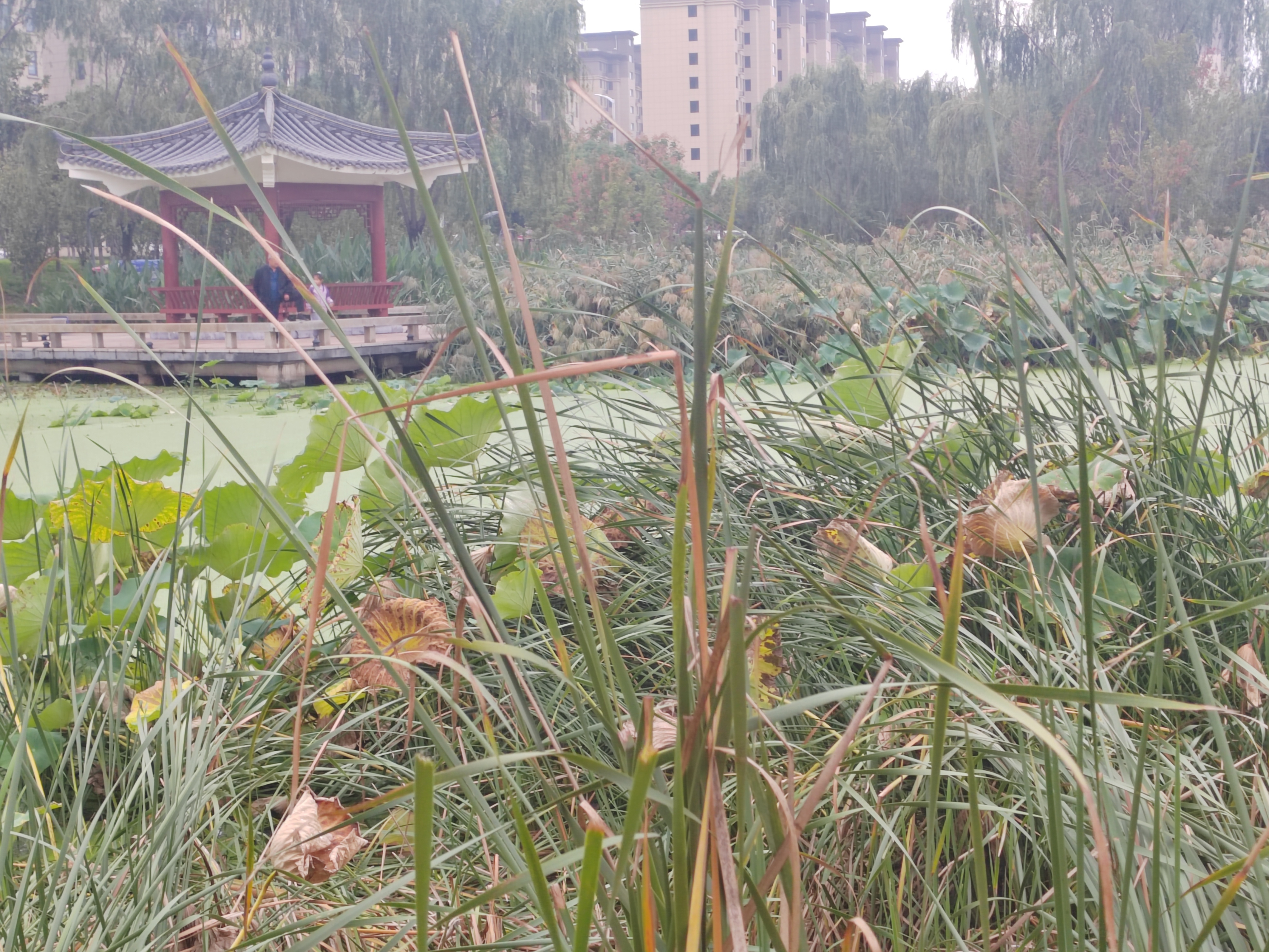 沿堤而行,空气里浮动着残荷的清香。虽不是盛夏“接天莲叶无穷碧”的盛景,却见枯梗斜斜映在水中,偶有野鸭划开碧波,尾鳍搅起一圈圈涟漪,倒让这湖多了几分灵动的野趣。岸边阁亭内或石阶上,很多老人三五成堆正围坐一起聊天,孩童们在湖边绿化帶中奔跑玩耍,欢声笑语落在水面,与远处亭台的飞檐相映,竟让人忘了是在县城之中,只觉闯入了一幅鲜活的江南水墨。