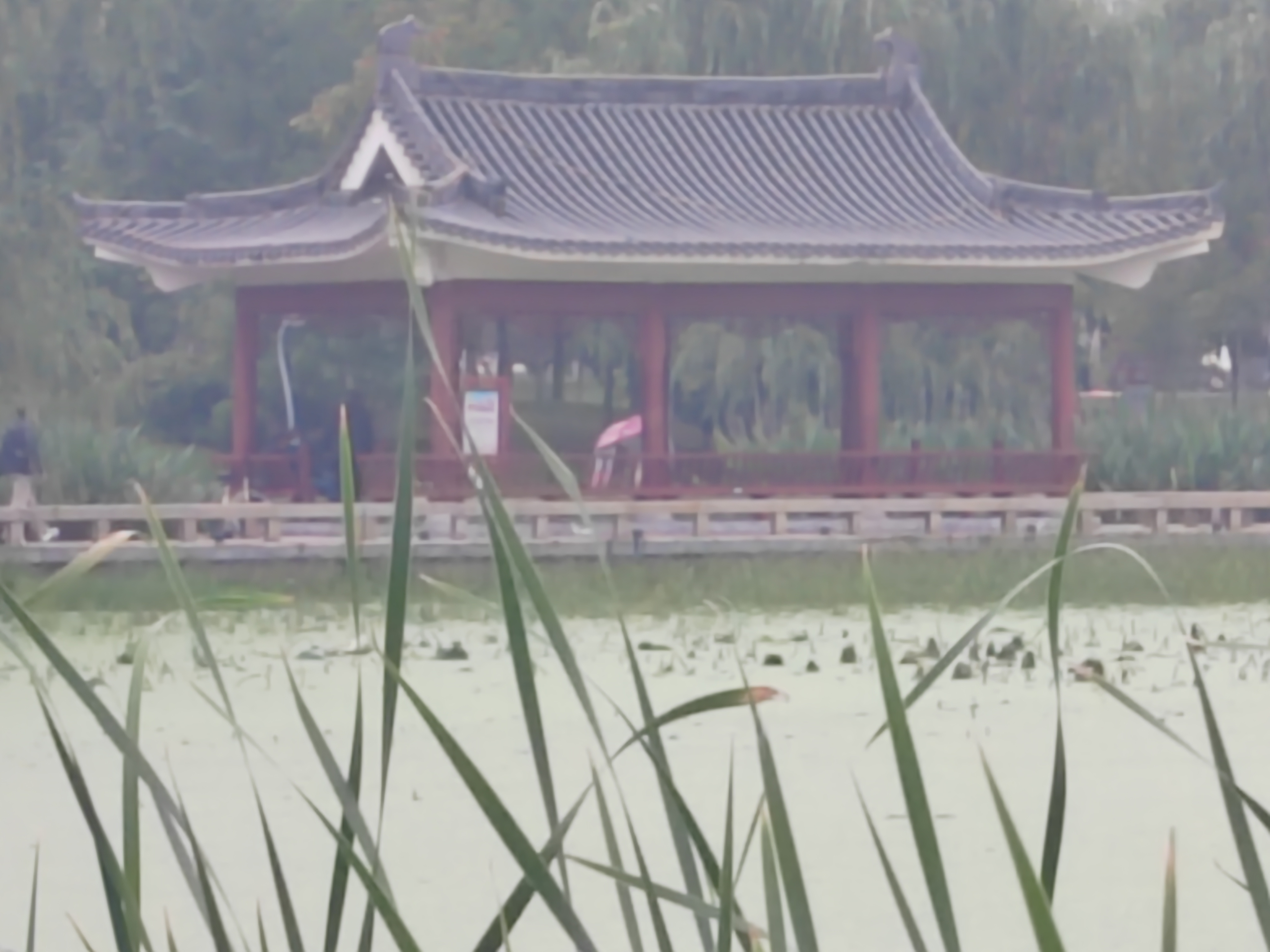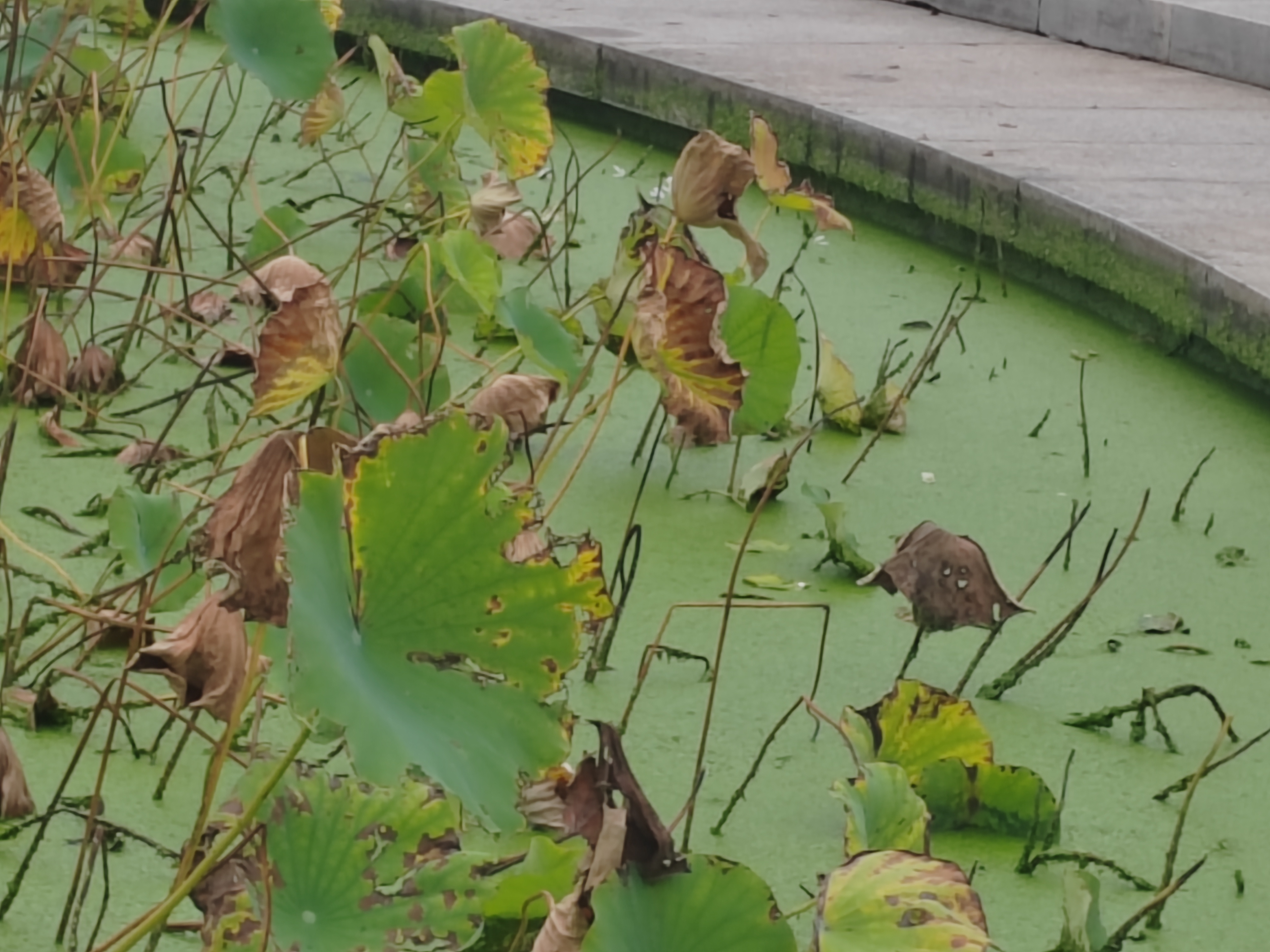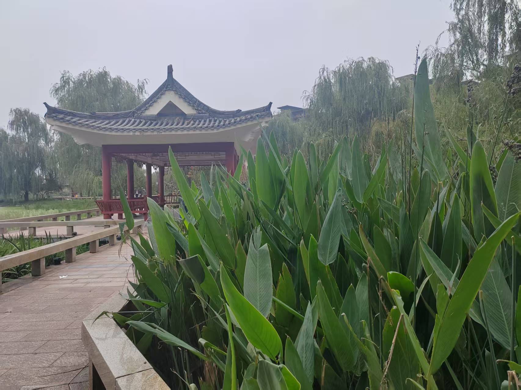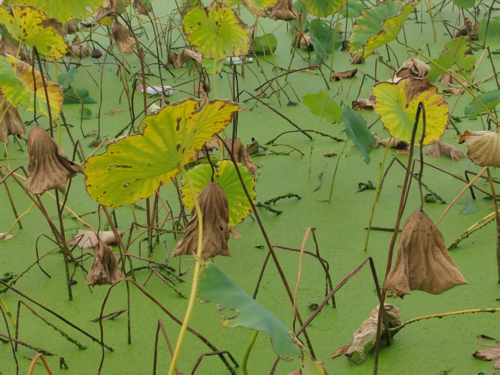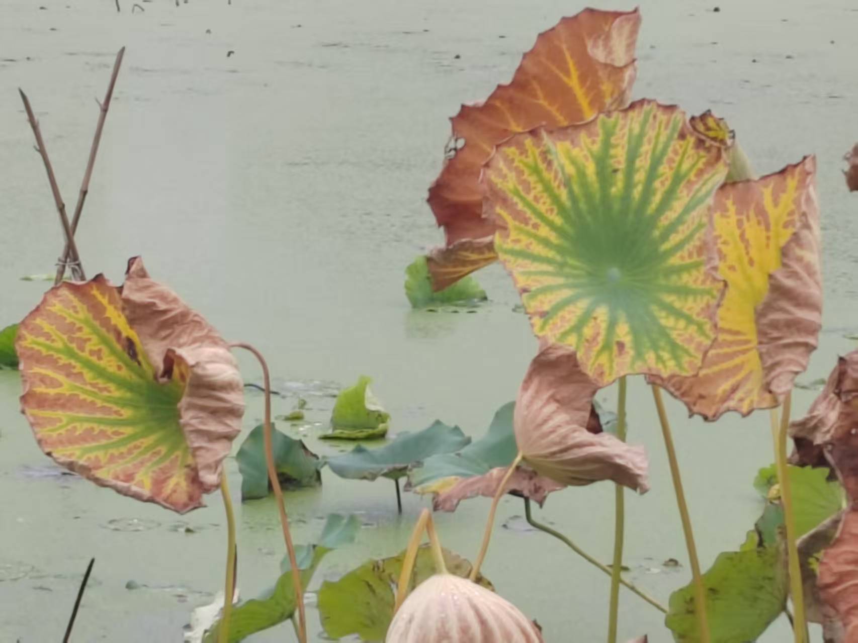 沿堤而行,空气里浮动着残荷的清香。虽不是盛夏“接天莲叶无穷碧”的盛景,却见枯梗斜斜映在水中,偶有野鸭划开碧波,尾鳍搅起一圈圈涟漪,倒让这湖多了几分灵动的野趣。岸边阁亭内或石阶上,很多老人三五成堆正围坐一起聊天,孩童们在湖边绿化帶中奔跑玩耍,欢声笑语落在水面,与远处亭台的飞檐相映,竟让人忘了是在县城之中,只觉闯入了一幅鲜活的江南水墨。