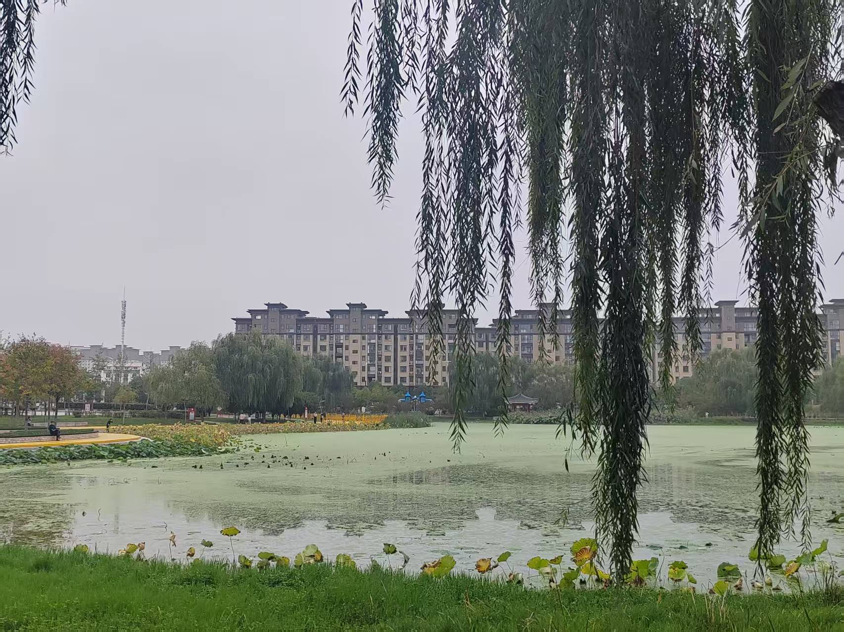 中秋的风携着国庆与中秋交织的意,轻轻推开汝南小西湖的画帘。循着湖边漫道缓步前行,最先撞入眼帘的是岸边垂杨——枝条如蘸了墨的笔,在澄澈的湖面轻轻扫过,将蓝天白云的倒影揉成细碎的银纹,倒比春日的新绿多了几分温润的诗意。