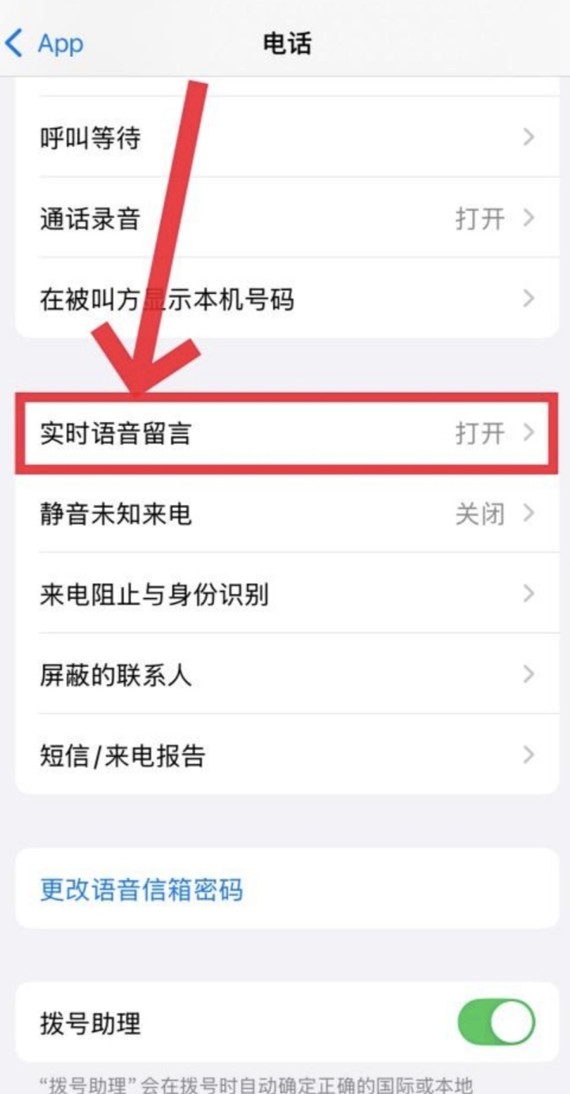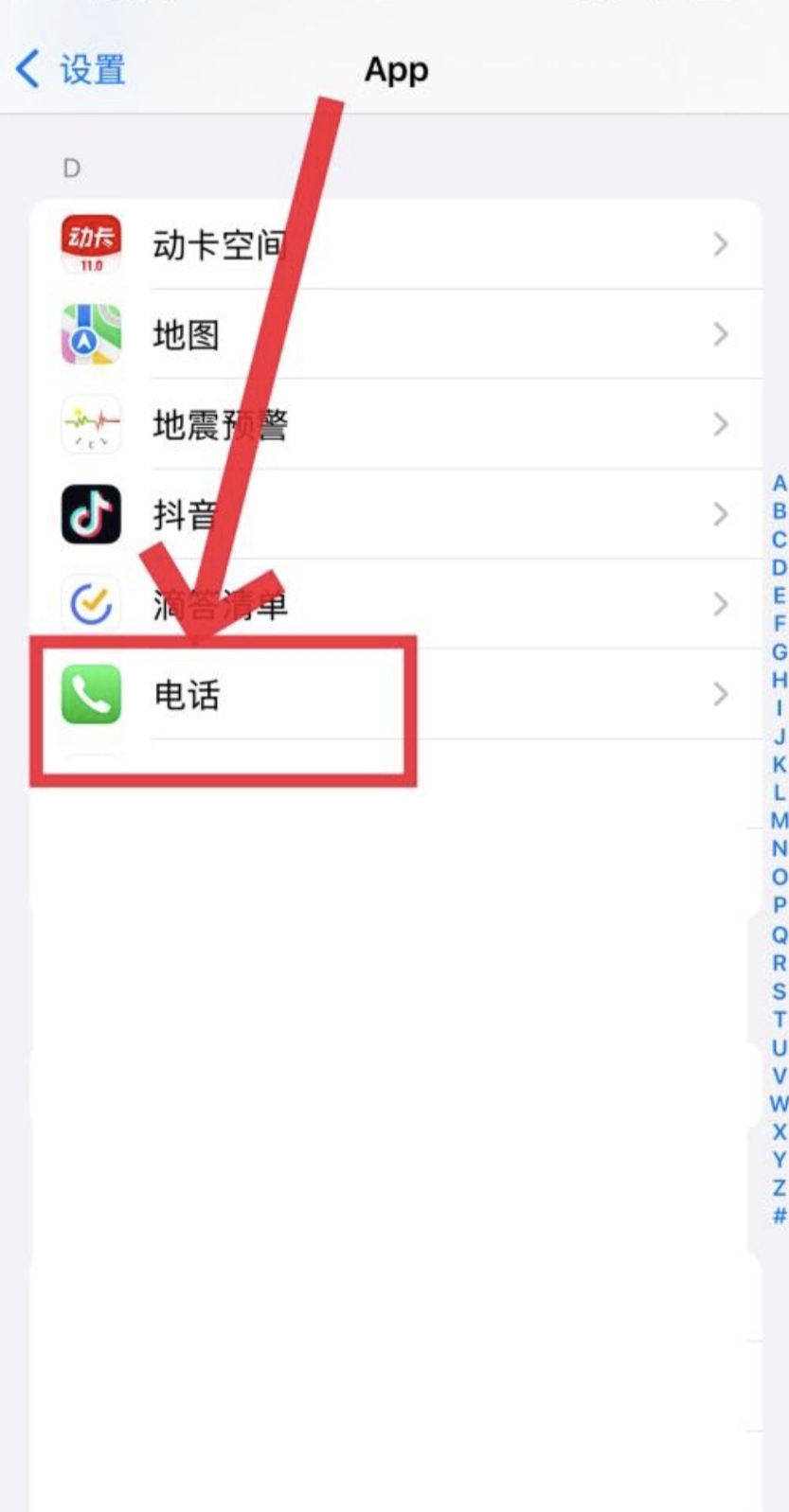 首先打开苹果手机设置页面,点击:App。2.进入到App页面后,找到并点击“电话”。3.到电话页面后,找到点击“实时语音