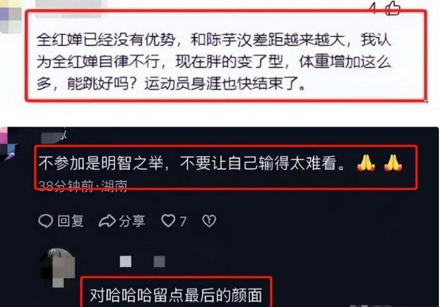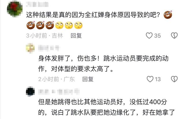 有人说“全红婵已经没有优势,体重增加这么多,运动员生涯也快结束了”;
