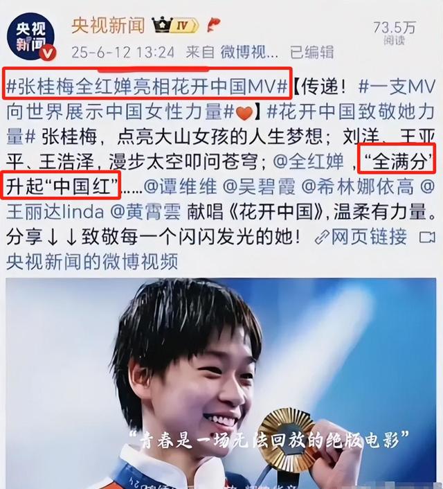 6月12日,央视新闻说全红婵是“全满分,升起‘中国红’”,8个字就将她的成就点了出来。