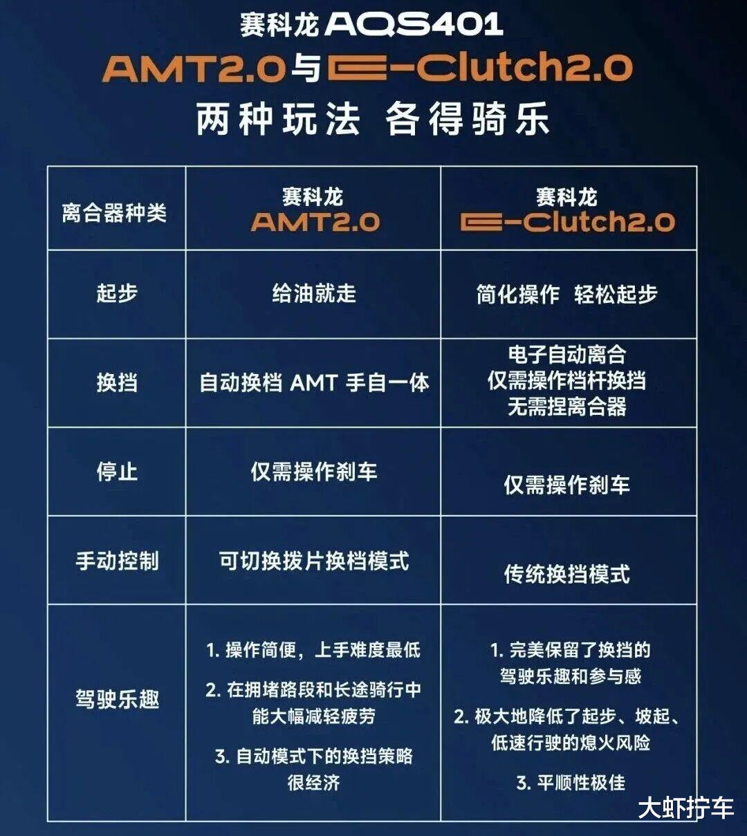 日前,赛科龙发布了旗下双缸中量级巡航车AQS401的E-clutch2.0版本,许多车友看到了之后一脸懵逼:AQS401不是本来就是自动挡么?怎么就又发布了一次?是自动挡变聪明了?