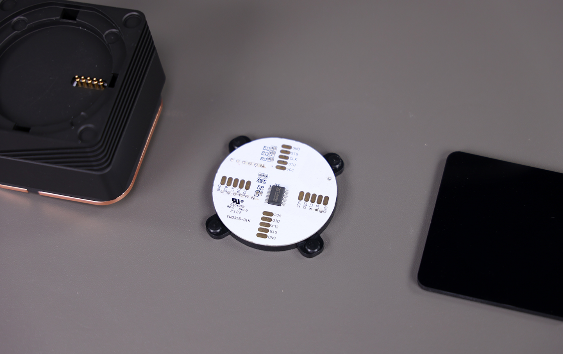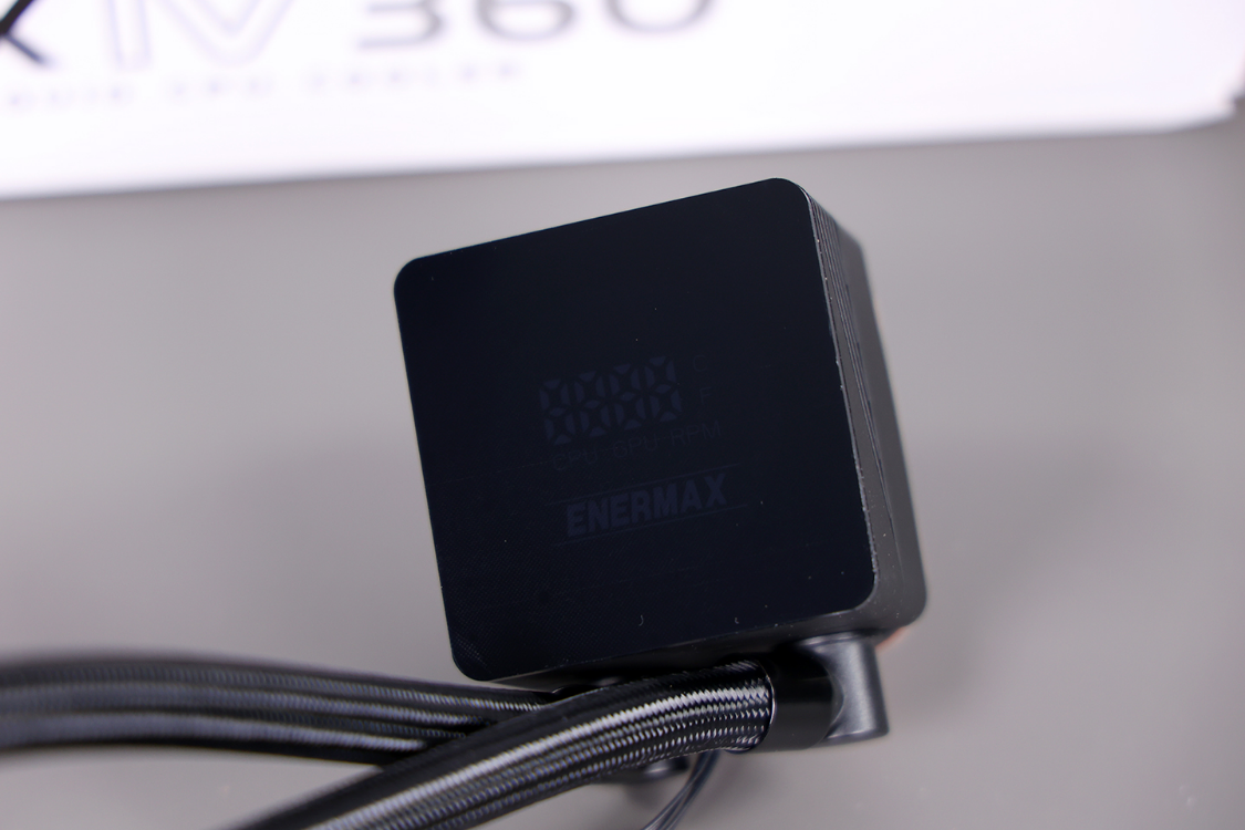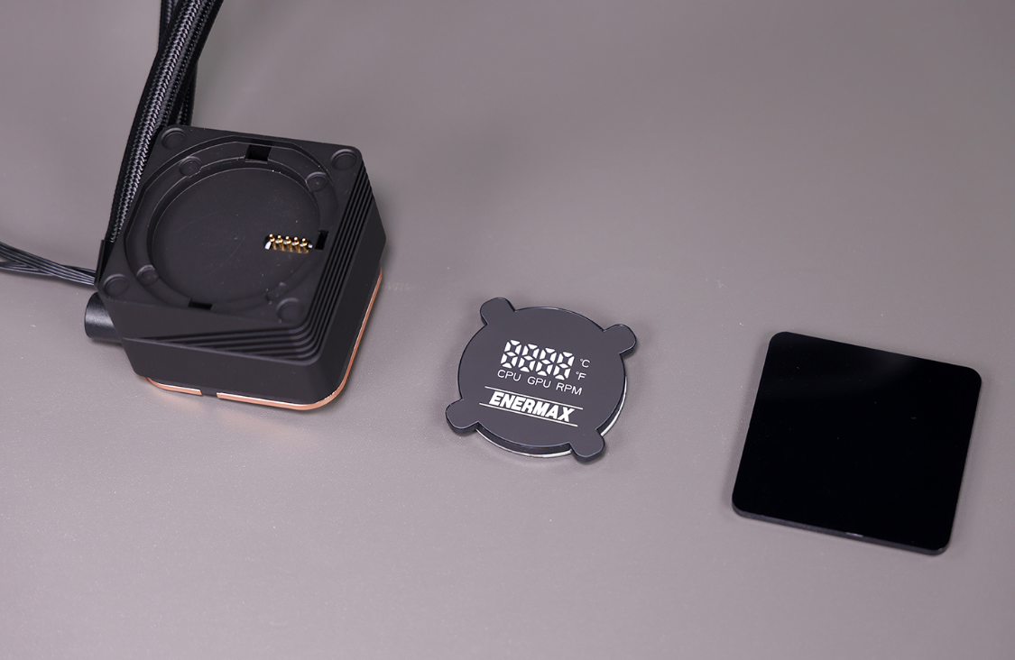 方形冷头顶部有一块黑色的磁吸式亚克力盖板,盖板内部则隐藏了一块磁吸式数显屏,可以根据装机需要,自定义数显屏的显示方向。搭配上水冷配套的状态监测软件,玩家可以通过冷头实时查看CPU/显卡的温度或主板CPU_FAN接口的风扇转速,并且当温度达到警告值后,屏幕上的数字还会以闪动的形式提醒玩家,非常贴心。