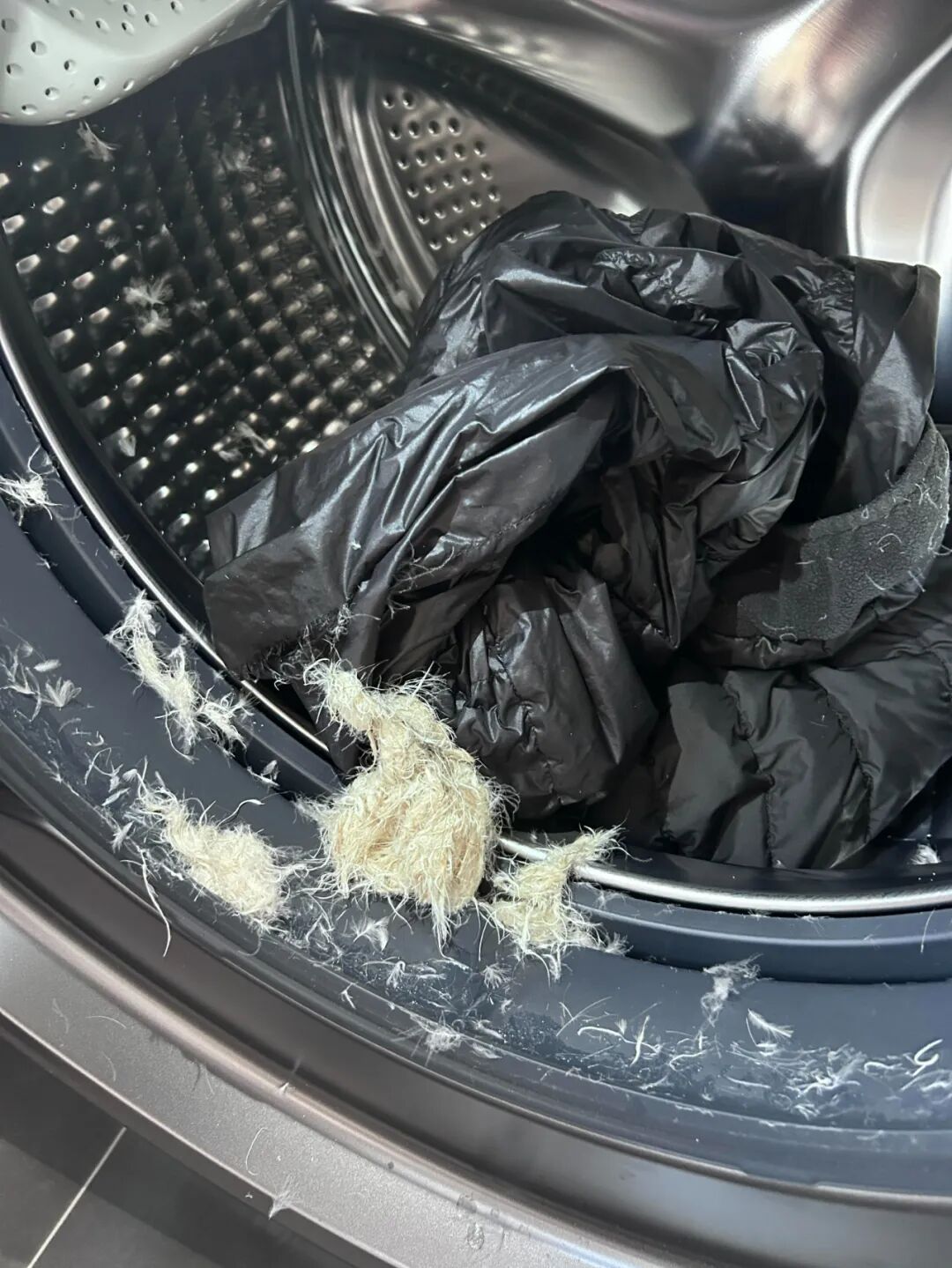 不知道不能用洗衣机洗羽绒服, 一打开吓一跳,直接爆炸了!