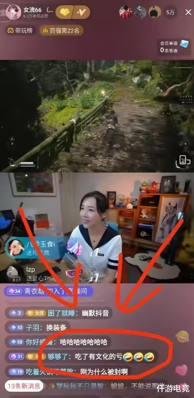 说起女流这位美女游戏主播,我记得去年《黑神话:悟空》刚正式上线时,我就是上班摸鱼看女流玩黑神话开荒的。然后最让我印象深刻的就是,因为女流文化底蕴更好,她在解读一段游戏内容的经书时,结果被误封了直播间,还登上了热搜,这还真是吃了文化的亏了,一般人还真的吃不了这种亏。