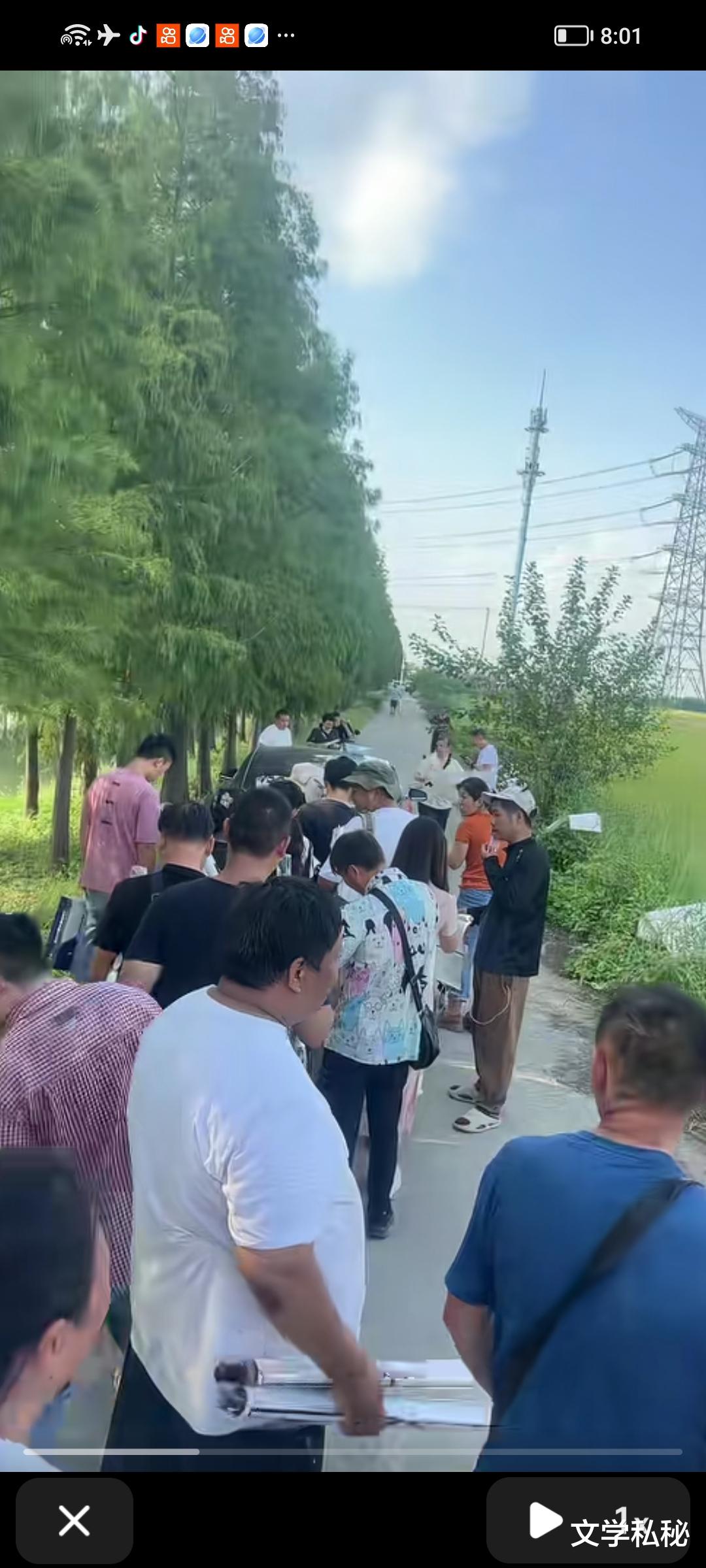 秋阳还是挺猛烈的,但是排队的人群,在农田深处的小道上,带来了与秋阳有得一拼的热闹。