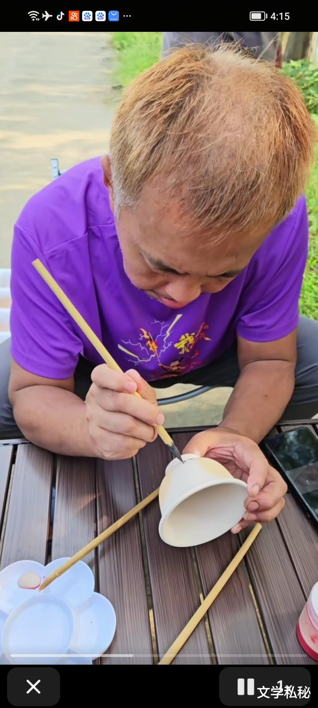 值得一提的是,10月4日下午,他开辟了新的画种,在一位自称“景飘”的粉丝的协助下,为“青花釉下彩”半成品坯体绘制了动物小品,日后,这些坯体将专车运到景德镇,烧制成成品,届时,沈巍的美术创作,将有新的文创产品的一个系列。