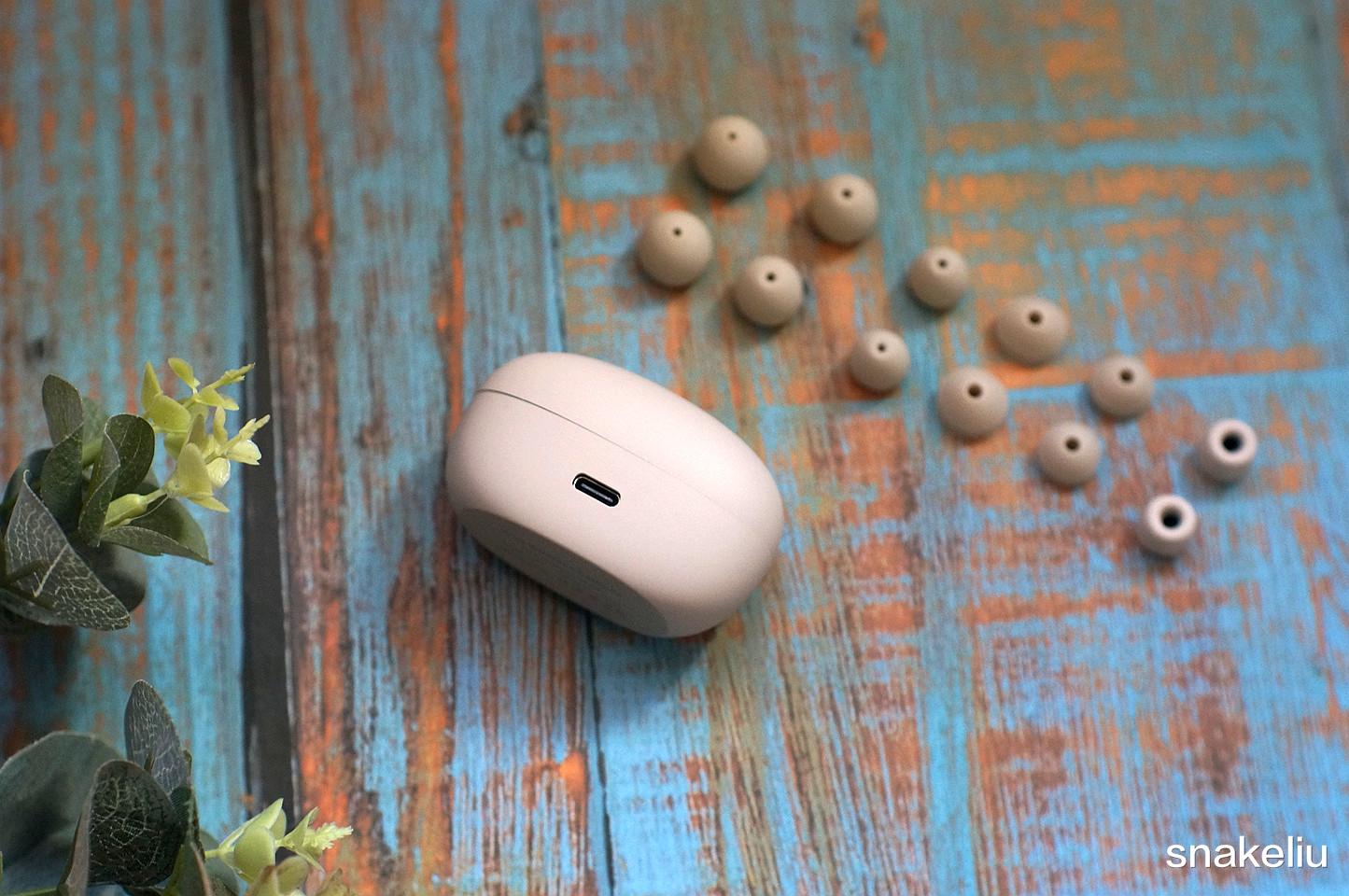 这款睡眠耳机采用了TWS设计方案,两个耳机独立设计,并且可以收纳在电池盒内。电池盒正面有一个按键和LED指示灯,背面设计了Type-C充电口。