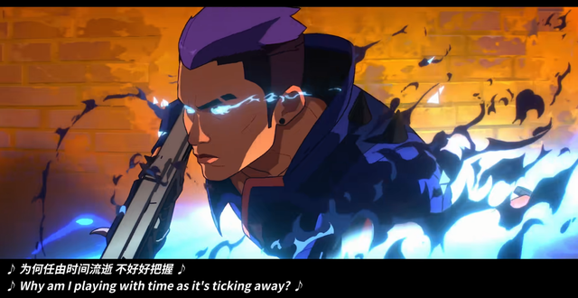 早在《英雄联盟》时期,Riot就凭借这种风格火爆全球,充分证明了其在市场上的可行性。而《无畏契约手游》的CG微电影采用了与《双城之战》一脉相承的三渲二动画风格,兼具手绘质感与立体动感;历年世界赛主题曲则多以2D动画短片呈现,叙事流畅、场景切换自如,极具张力。其中,2023年的世界赛主题曲《流光似箭》,更是被不少玩家奉为近些年最优秀的游戏音乐MV作品。