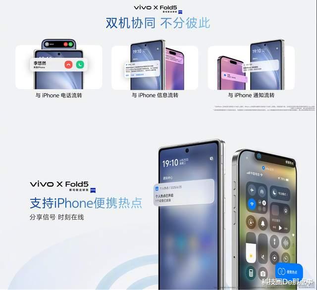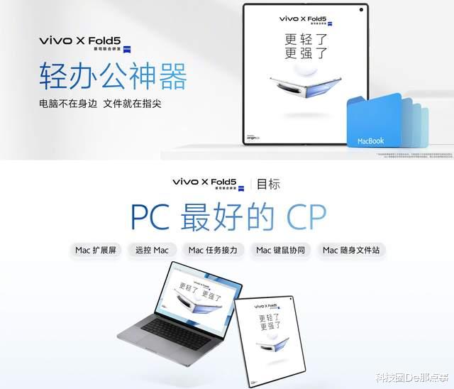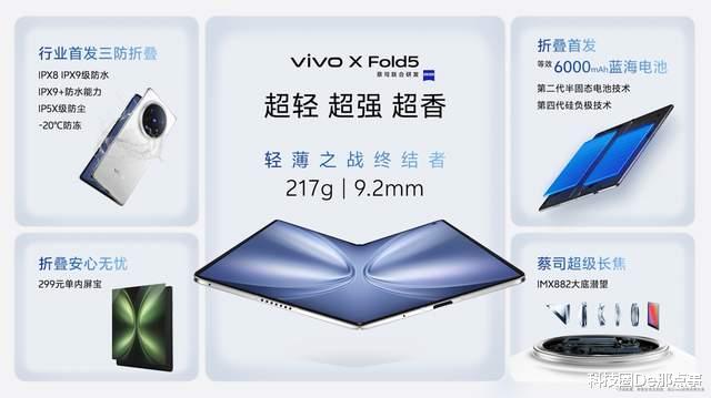 【科技圈De那点事-报道】6月25日消息,vivo召开了折叠旗舰vivo X Fold5线上新品发布会,再次突破了上一代的全球轻薄记录,全球首款三防(IPX9+防水能力)折叠屏,打通了苹果双机全面的跨生态互联互通体验,号称年轻人用户的「轻办公神器」最强搭子。