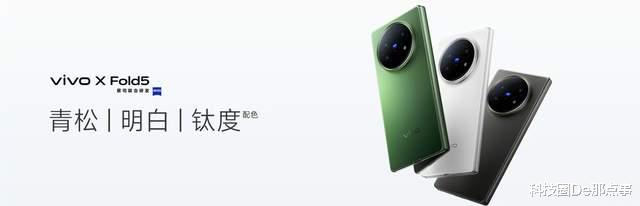 外观方面,vivo X Fold5延续了上一代的极致简洁设计风格,在极致轻薄的机身上,打造了纯色一体化后盖,消除了视觉冗余;平直的Deco与机身浑然一体。整机重量压缩至217g(仅限钛度色),轻过当下所有大折叠和主流直板旗舰,带给用户前所未有的轻盈持机体验。机身拥有钛度、明白、青松三款配色可选,其中高级感满满的「青松」配色,配合玻璃材质,演绎出一种生机盎然的绿,传递出「自由如风」的生活态度。
