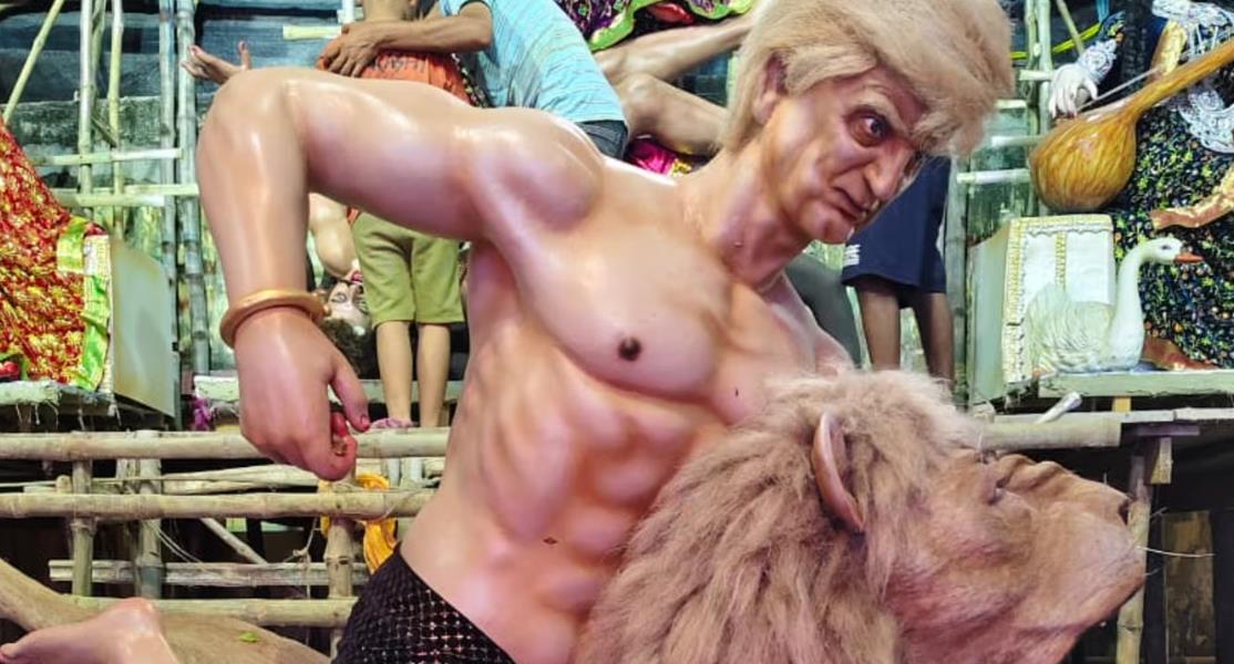 今年西孟加拉邦穆尔希达巴德的杜尔迦节期间,一座名为"潘达尔"的庆典棚屋将美国总统唐纳德·特朗普塑造成阿修罗(恶魔)形象。