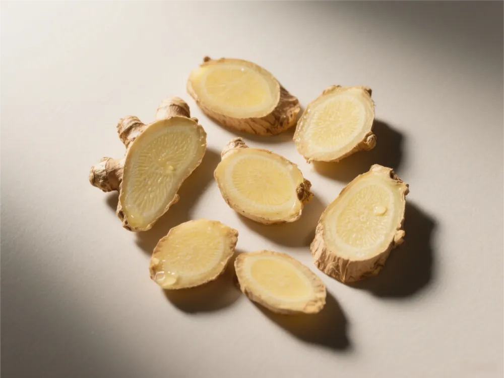 其他成分:生姜还含有多种酚类和黄酮类化合物,如姜黄素和姜黄素类化合物。此外,生姜还含有丰富的挥发油,主要成分包括姜烯、姜醇和姜酚等,这些挥发油赋予了生姜独特的香气。
