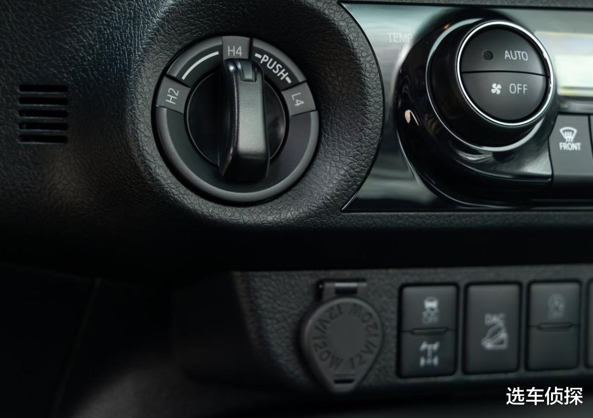 原厂设置了六种模式,包括沙地、泥地、岩石、泥土、雪地和自动。在自动模式下,车辆周围的传感器会评估路况并采用适当的动力输出、牵引力控制等。当选择L4低速四驱时,可以启动沙地、泥地、岩石和自动;而选择H4高速四驱时,智能在泥土、沙地、泥地、雪地和自动中选择其一,但对于这样的皮卡车型来说,越多的电子辅助,就意味着越高的故障率。