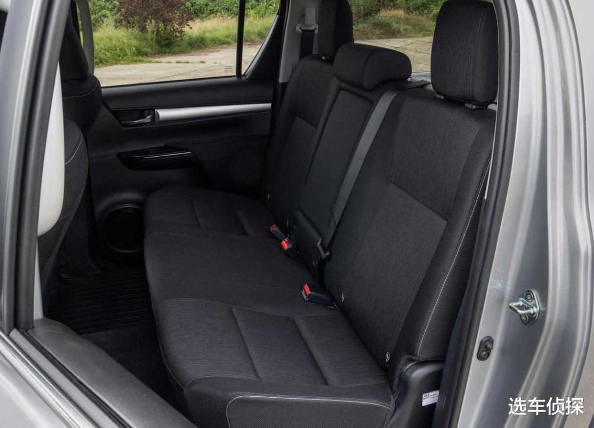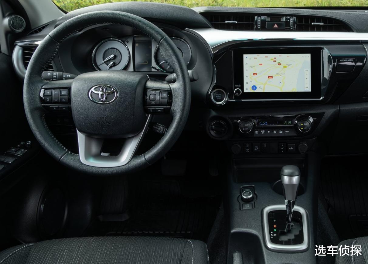 新款海拉克斯混动版的长宽高分别为5325mm、1855mm、1900mm,座舱有两排座椅,和标准版的尺寸类似,由于电池放在后排座椅下方,没有占用额外的空间,后部货舱的长度为1555mm,可以载重1000kg。高配车型还带有多媒体系统和9喇叭的JBL音响,通过苹果CarPlay,可以与手机互联,如果在手机上下载丰田自研的APP,还可以远程解锁车辆、提前打开空调系统。